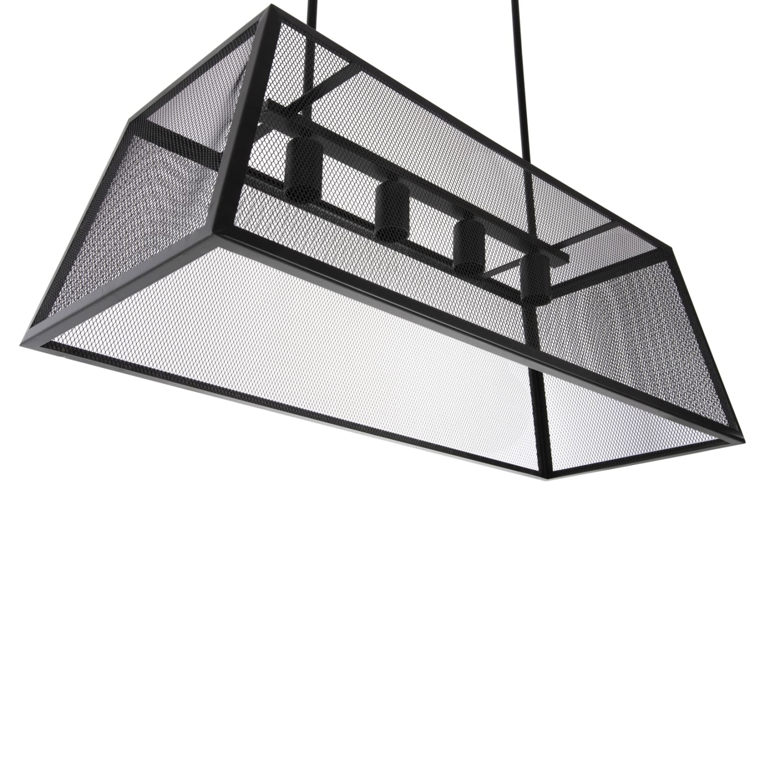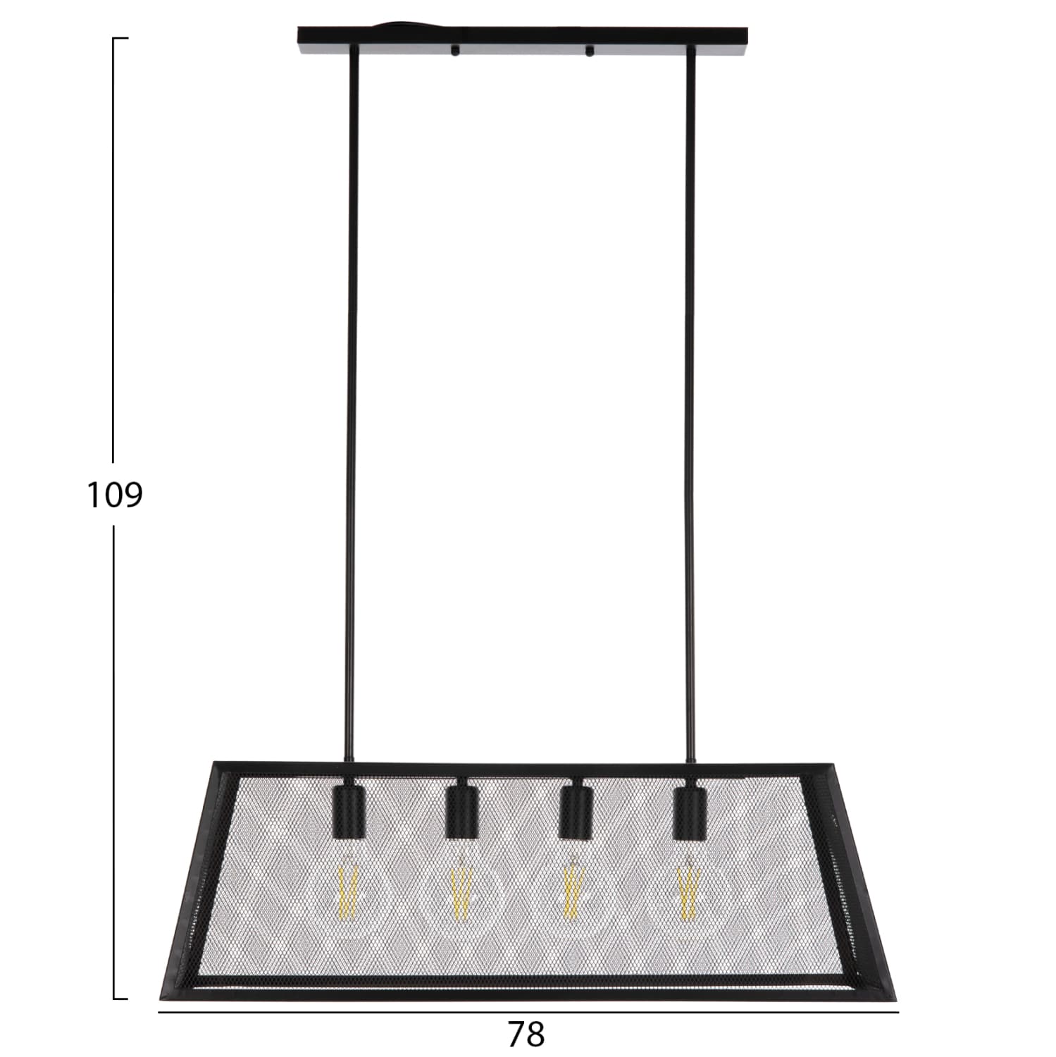 Ανακαλύψτε αυτό το νέο μας κρεμαστό 4-φωτο οροφής και ολοκληρώστε την διακόσμησή σας. Πρόκειται για ένα φωτιστικό στο οποίο οι λάμπες βρίσκονται σε έναν τραπεζοειδή μεταλλικό κλωβό. Σίγουρα θα δώσετε κάτι το διαφορετικό στην εικόνα του δωματίου σας.