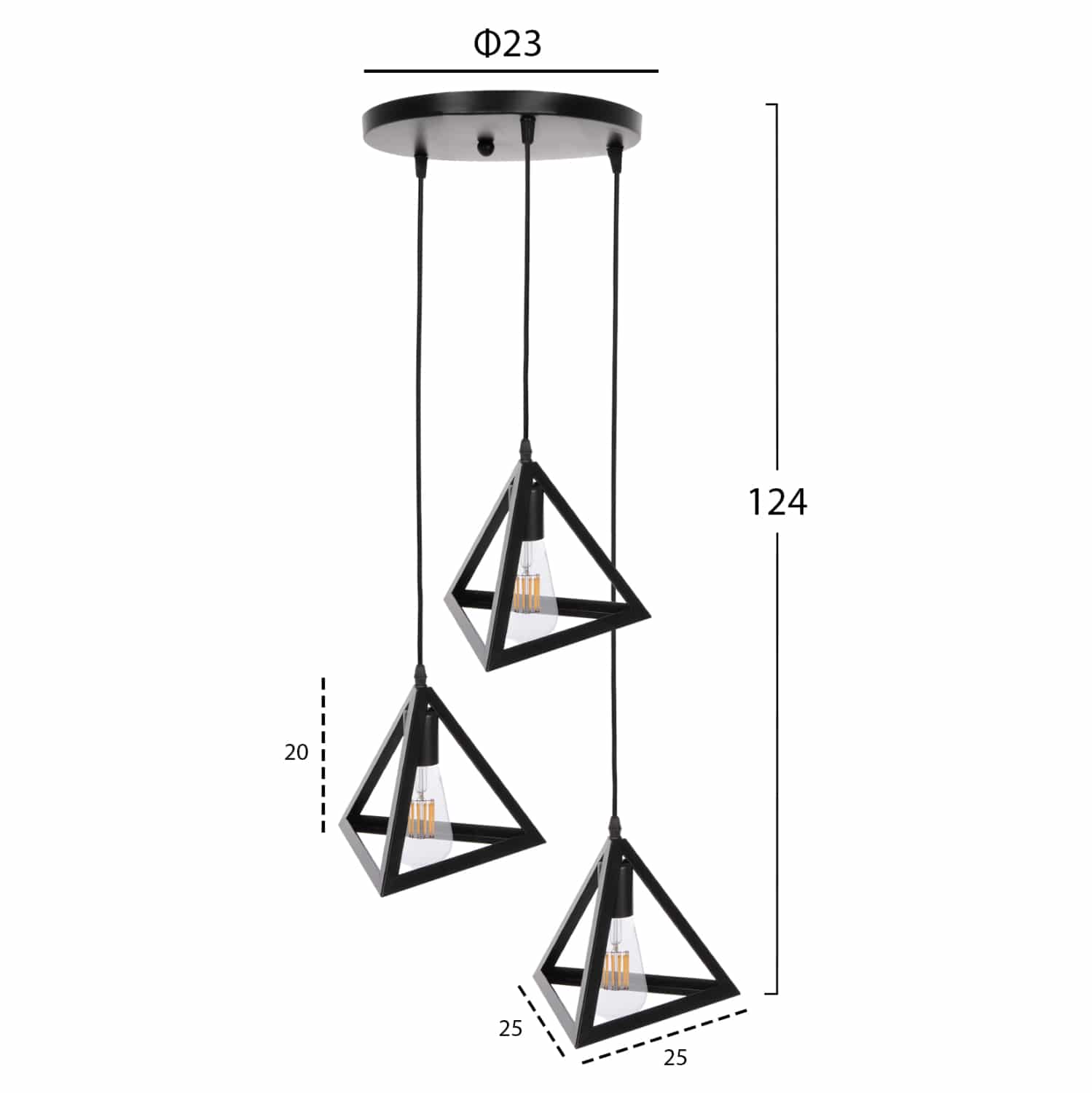 ΦΩΤΙΣΤΙΚΟ ΟΡΟΦΗΣ ΚΡΕΜΑΣΤΟ HM4182 3 ΜΑΥΡΑ ΜΕΤΑΛΛΙΚΑ ΚΑΠΕΛΑ ΠΥΡΑΜΙΔΑ Φ23×124Υεκ. HM4182