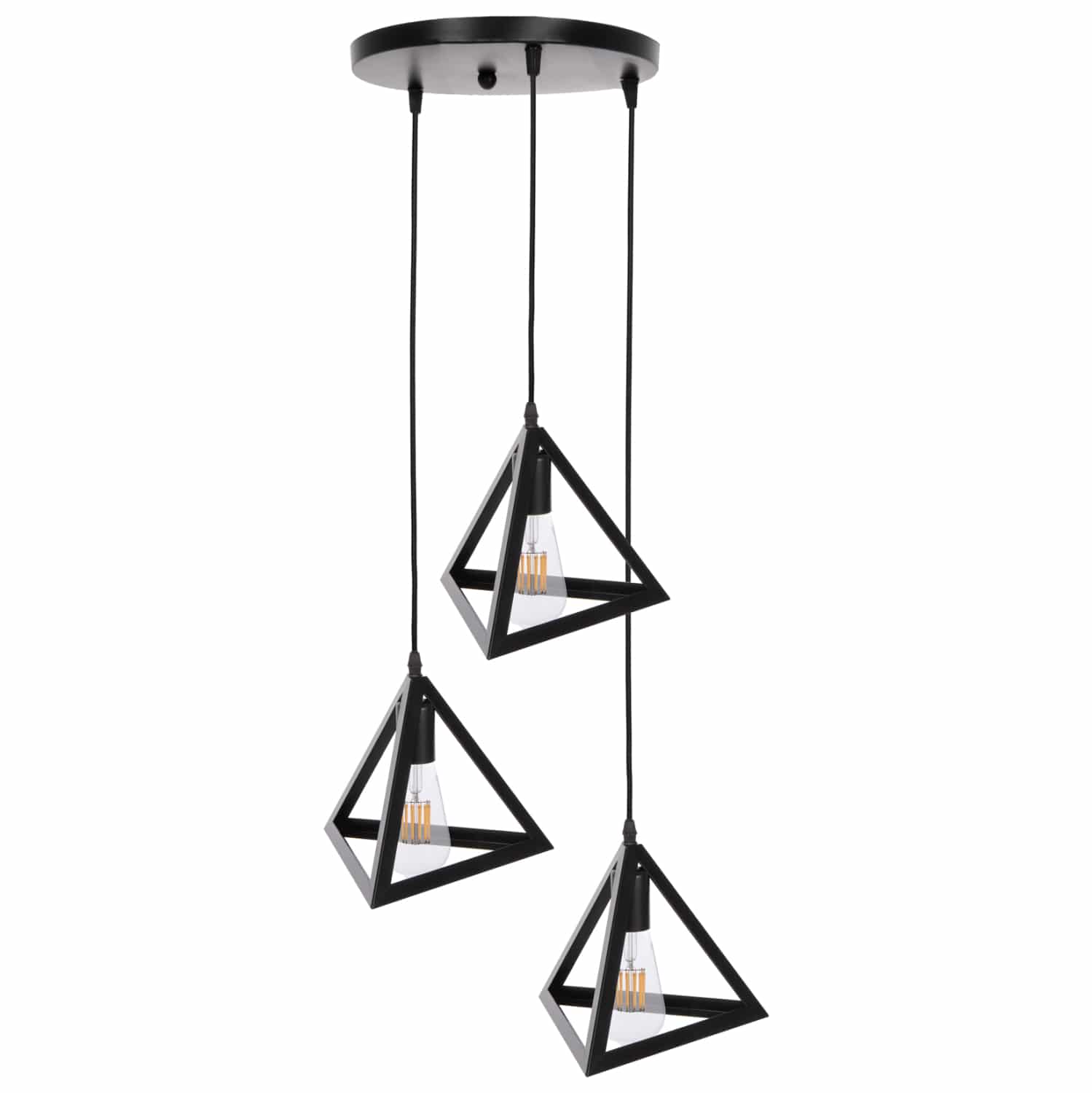 Ανακαλύψτε αυτό το νέο μας κρεμαστό 3-φωτο οροφής και ολοκληρώστε την διακόσμησή σας. Πρόκειται για ένα φωτιστικό με ΜΑΥΡΑ μεταλλικά καπέλα σε σχήμα πυραμίδας, και αποτελεί την τελευταία τάση στα φωτιστικά οροφής.