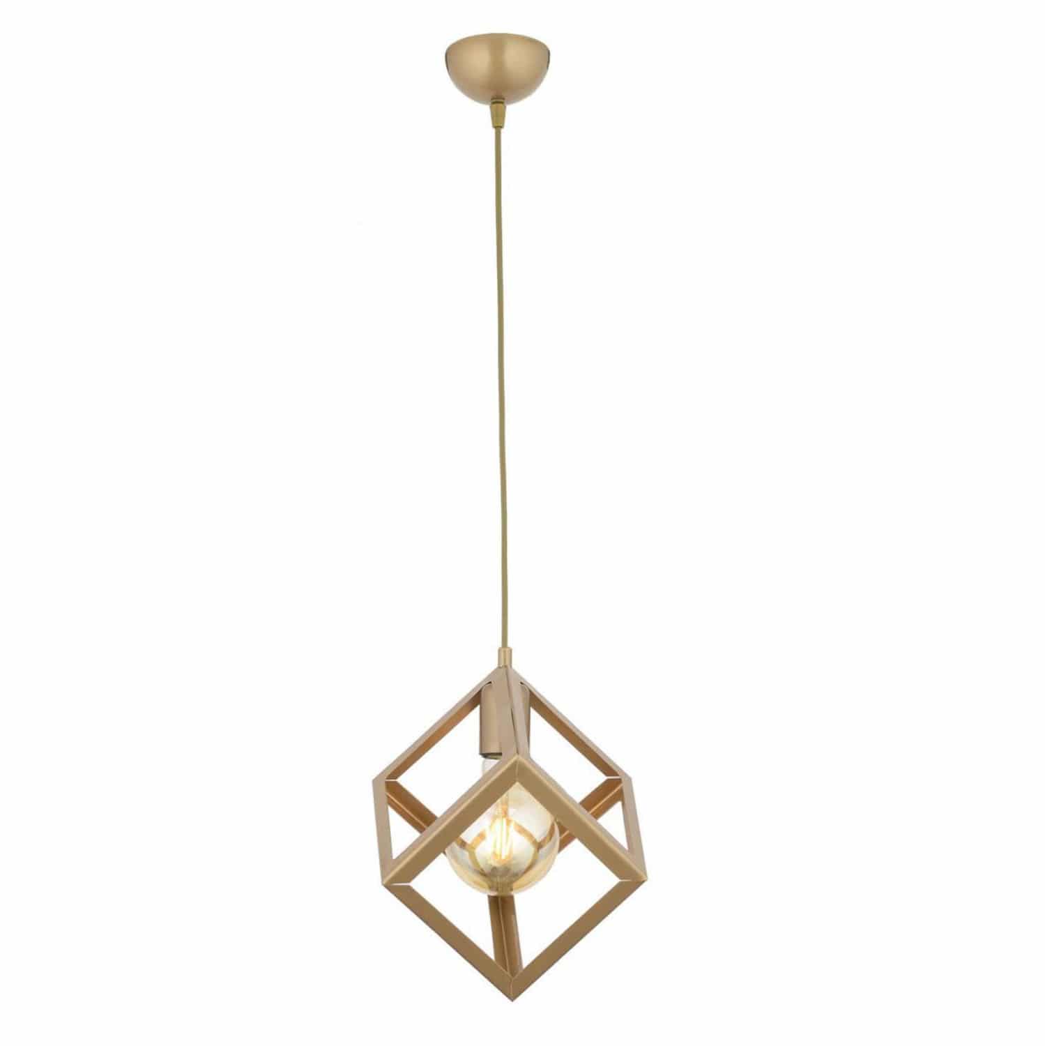Φωτιστικό οροφής, σε χρυσή απόχρωση και σχήμα κύβου.