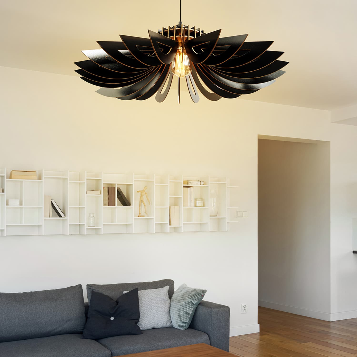 ΦΩΤΙΣΤΙΚΟ ΟΡΟΦΗΣ ΞΥΛΙΝΟ ΚΡΕΜΑΣΤΟ ΜΑΥΡΟ HM7348.03 Φ68×50Υ εκ. HM7348.03