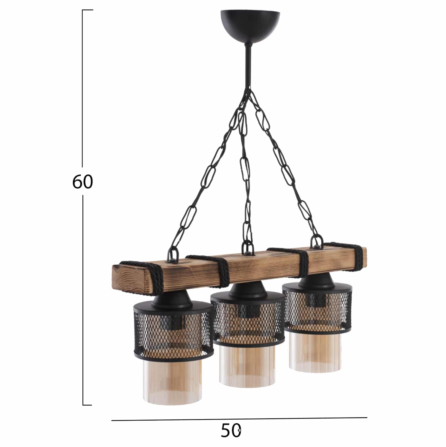 ΦΩΤΙΣΤΙΚΟ ΟΡΟΦΗΣ ΤΡΙΦΩΤΟ ΜΕ ΑΛΥΣΙΔΑ ΞΥΛΟ ΚΑΙ ΜΕΤΑΛΛΙΚΑ ΚΑΠΕΛΑ 50x12x60Y εκ.HM7699.01