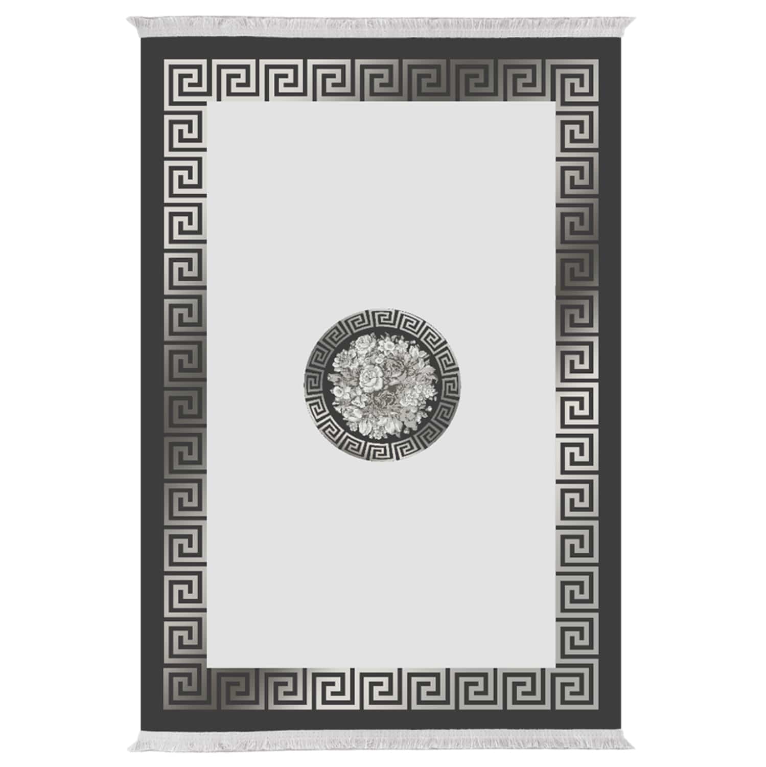 ΗΜ7675.35-χαλί σαλονιού—— Σας παρουσιάζουμε την νέα προσθήκη στην γκάμα των προϊόντων μας. Αυτό το χαλί έχει φόντο σε ΜΑΥΡΟ και ΓΚΡΙ σε όλη την έκτασή του και συμμετρικά σχήματα μαιάνδρων στην μπορντούρα και το κέντρο. Αυτή η αίσθηση της συμμετρίας αιχμαλωτίζει το βλέμμα και ερεθίζει τη φαντασία του καθενός.