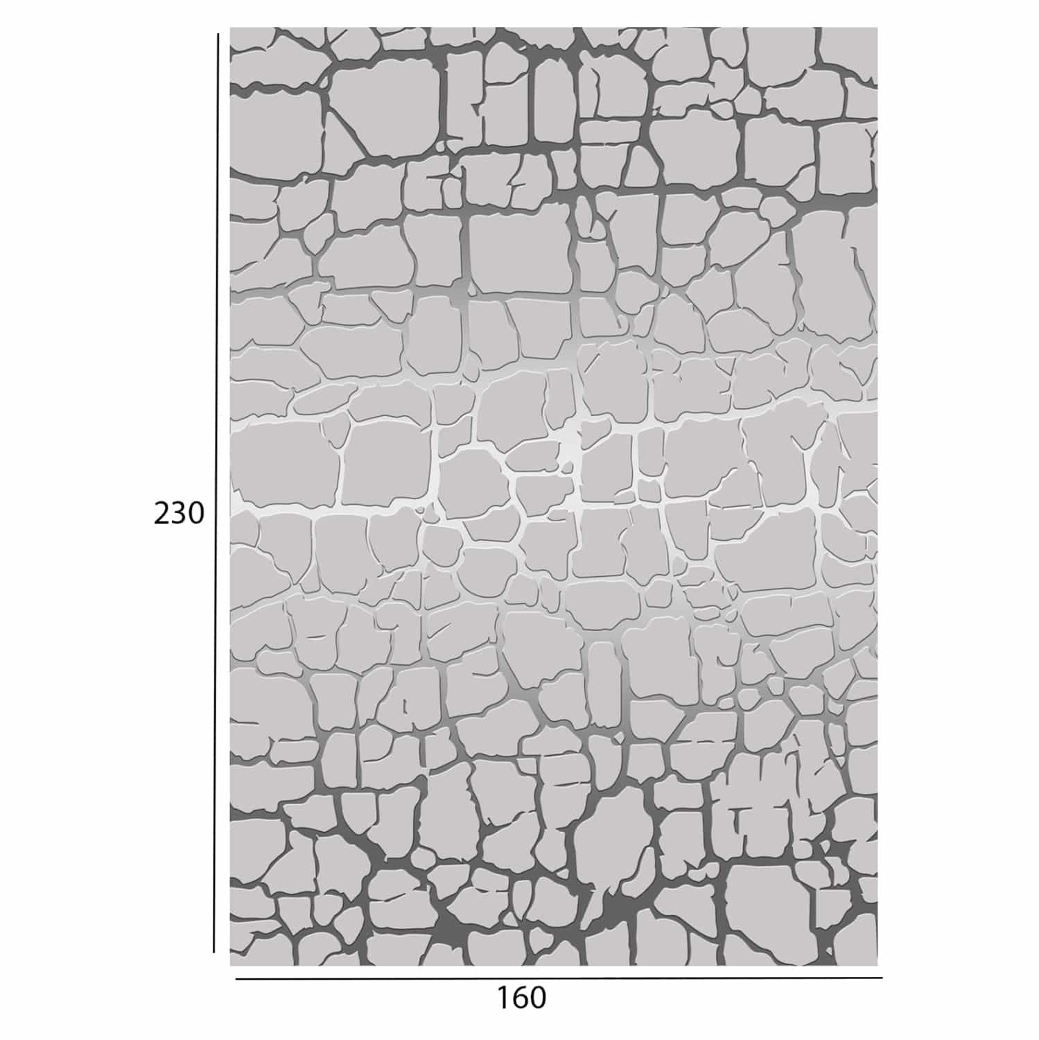 Αυτό το χαλί έχει την όψη αποξηραμένου χώματος με τις «ραγάδες» του και τα ακανόνιστα σχήματα σε ΑΣΗΜΟΓΚΡΙΖΩΠΕΣ αποχρώσεις. Σίγουρα πάντως, θα αποτελέσει αντικείμενο συζητήσεων στο σαλόνι σας. Άλλωστε, η γοητεία πού ασκεί το χαλί είναι τόσο δυνατή, πού κανένα δεν αφήνει αδιάφορο και όλοι θα προσπαθούν να «δουν» και να αντιληφθούν το pattern. Προφανέστατα, λοιπόν, αυτό το χαλί αποτελεί μια μοντέρνα πρόταση για το πάτωμά σας, χωρίς υπερβολές.