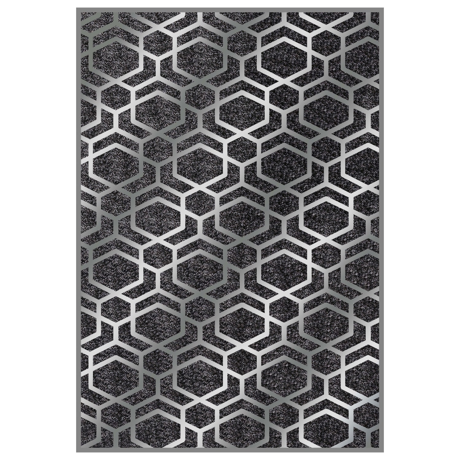 Το μοντέρνο αυτό χαλί διαθέτει φόντο σε ΓΚΡΙ χρώμα και κυψελωτό σχέδιο σε όλη την επιφάνεια του χαλιού σε ΑΣΗΜΙ χρώμα, όπως ΑΣΗΜΙ είναι και η μπορντούρα του χαλιού. Η αίσθηση της συμμετρίας που δίνει αυτό το χαλί αιχμαλωτίζει το βλέμμα και ερεθίζει τη φαντασία, με αποτέλεσμα να μην μπορείς να πάρεις τα μάτια σου μακριά από αυτό το χαλί. Άλλωστε, η γοητεία πού ασκεί το χαλί είναι τόσο δυνατή, πού κανένα δεν αφήνει αδιάφορο.
