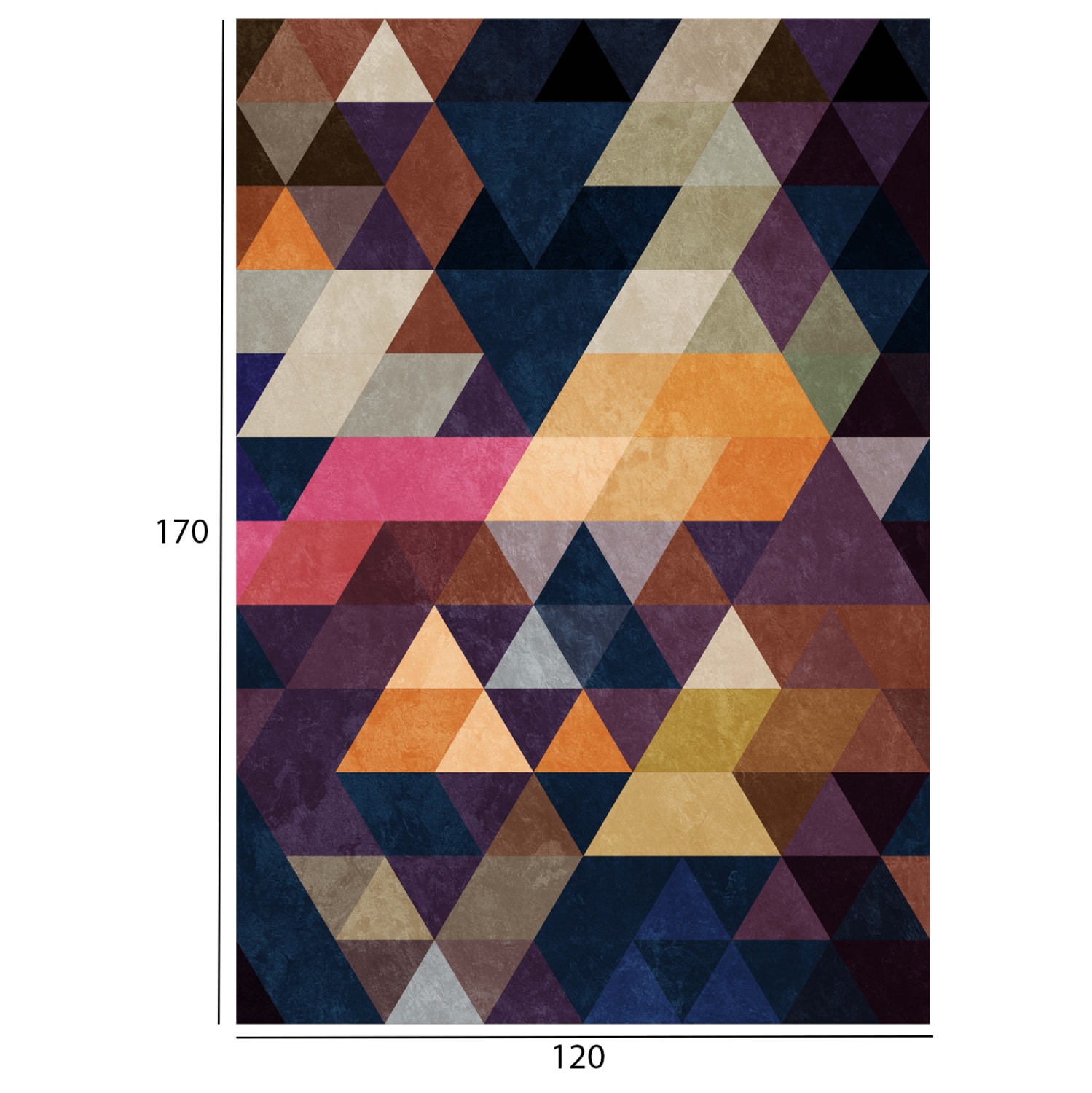 Αυτό το χαλί έχει σχέδιο με πολυάριθμα ισοσκελή τρίγωνα σε πάρα πολλά χρώματα. Σίγουρα, θα αποτελέσει αντικείμενο συζητήσεων στο σαλόνι σας. Άλλωστε, όλοι θα προσπαθούν να «δουν» και να μετρήσουν τα τρίγωνα. Προφανέστατα, λοιπόν, αυτό το χαλί αποτελεί μια μοντέρνα πρόταση για το πάτωμά σας, χωρίς υπερβολές.