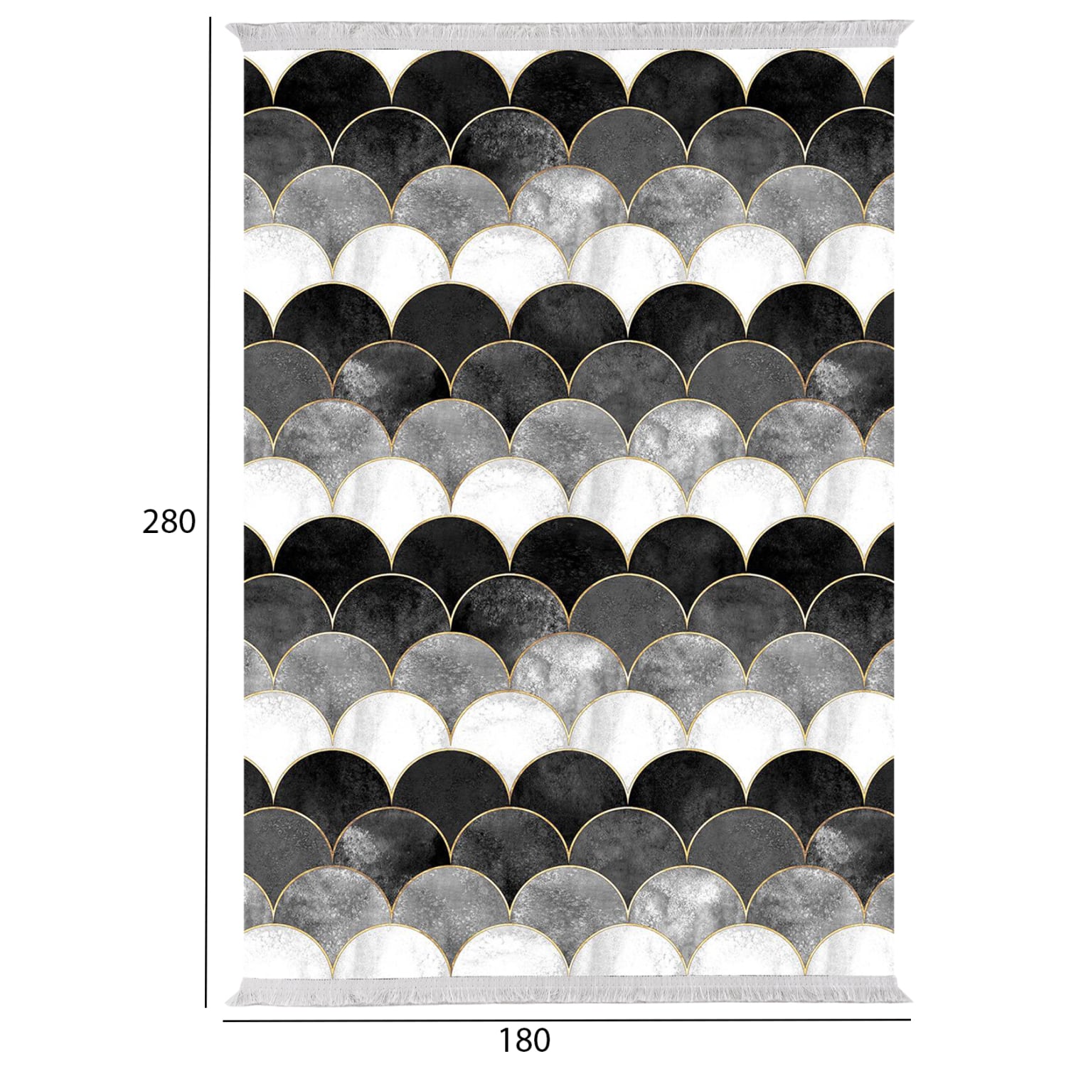 ΗΜ7723.33- χαλί σαλονιού—— Σας παρουσιάζουμε την νέα προσθήκη στην γκάμα των προϊόντων μας. Αυτό το χαλί απεικονίζει με μια αφηρημένη ματιά, ημικυκλικά κύματα σε χρώμα ΑΣΠΡΟ, ΜΑΥΡΟ, ΓΚΡΙ. Η αίσθηση της συμμετρίας των κυμάτων που δίνει αυτό το χαλί αιχμαλωτίζει το βλέμμα και ερεθίζει τη φαντασία του καθενός.