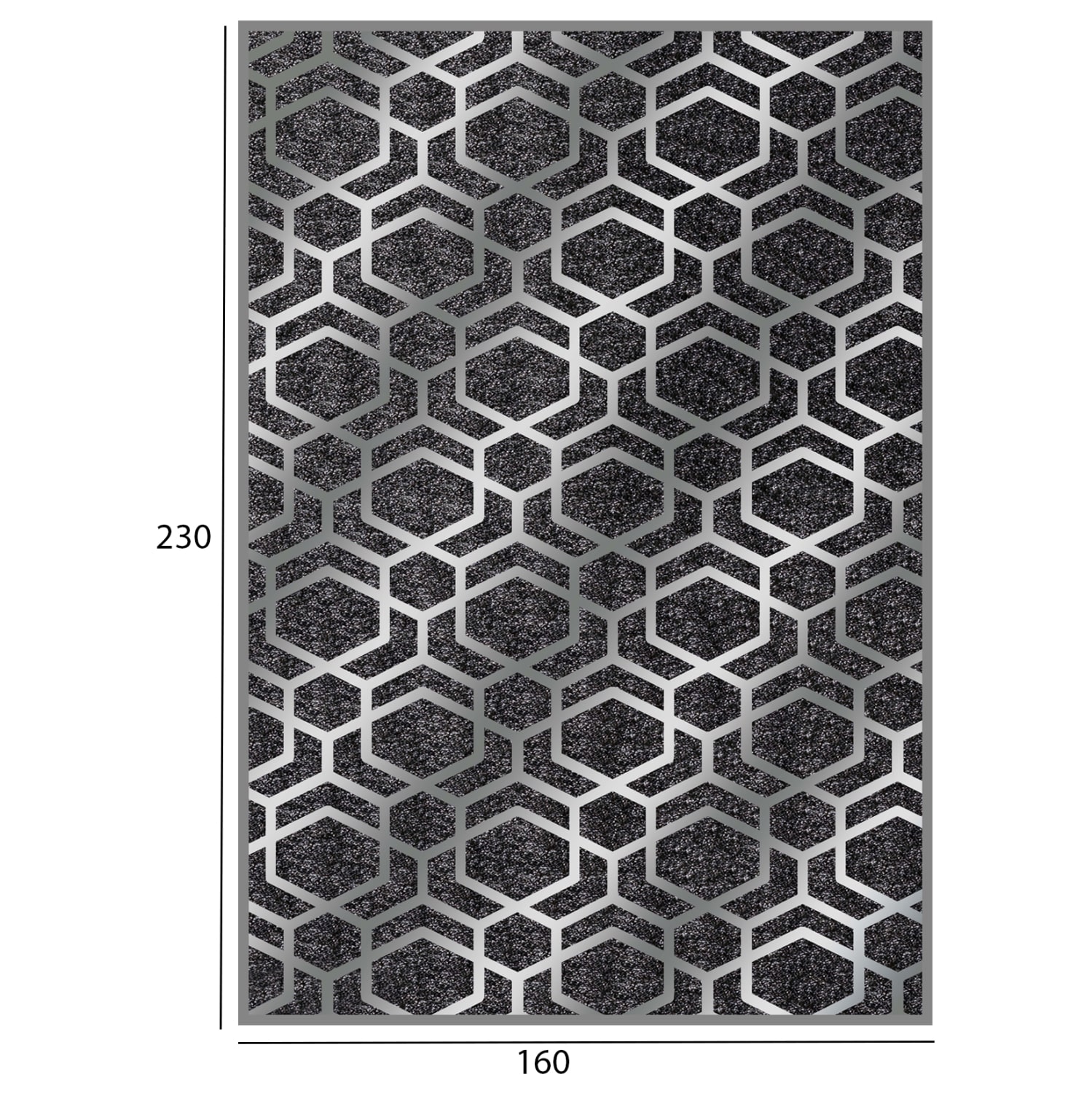 Το μοντέρνο αυτό χαλί διαθέτει φόντο σε ΓΚΡΙ χρώμα και κυψελωτό σχέδιο σε όλη την επιφάνεια του χαλιού σε ΑΣΗΜΙ χρώμα, όπως ΑΣΗΜΙ είναι και η μπορντούρα του χαλιού. Η αίσθηση της συμμετρίας που δίνει αυτό το χαλί αιχμαλωτίζει το βλέμμα και ερεθίζει τη φαντασία, με αποτέλεσμα να μην μπορείς να πάρεις τα μάτια σου μακριά από αυτό το χαλί. Άλλωστε, η γοητεία πού ασκεί το χαλί είναι τόσο δυνατή, πού κανένα δεν αφήνει αδιάφορο.