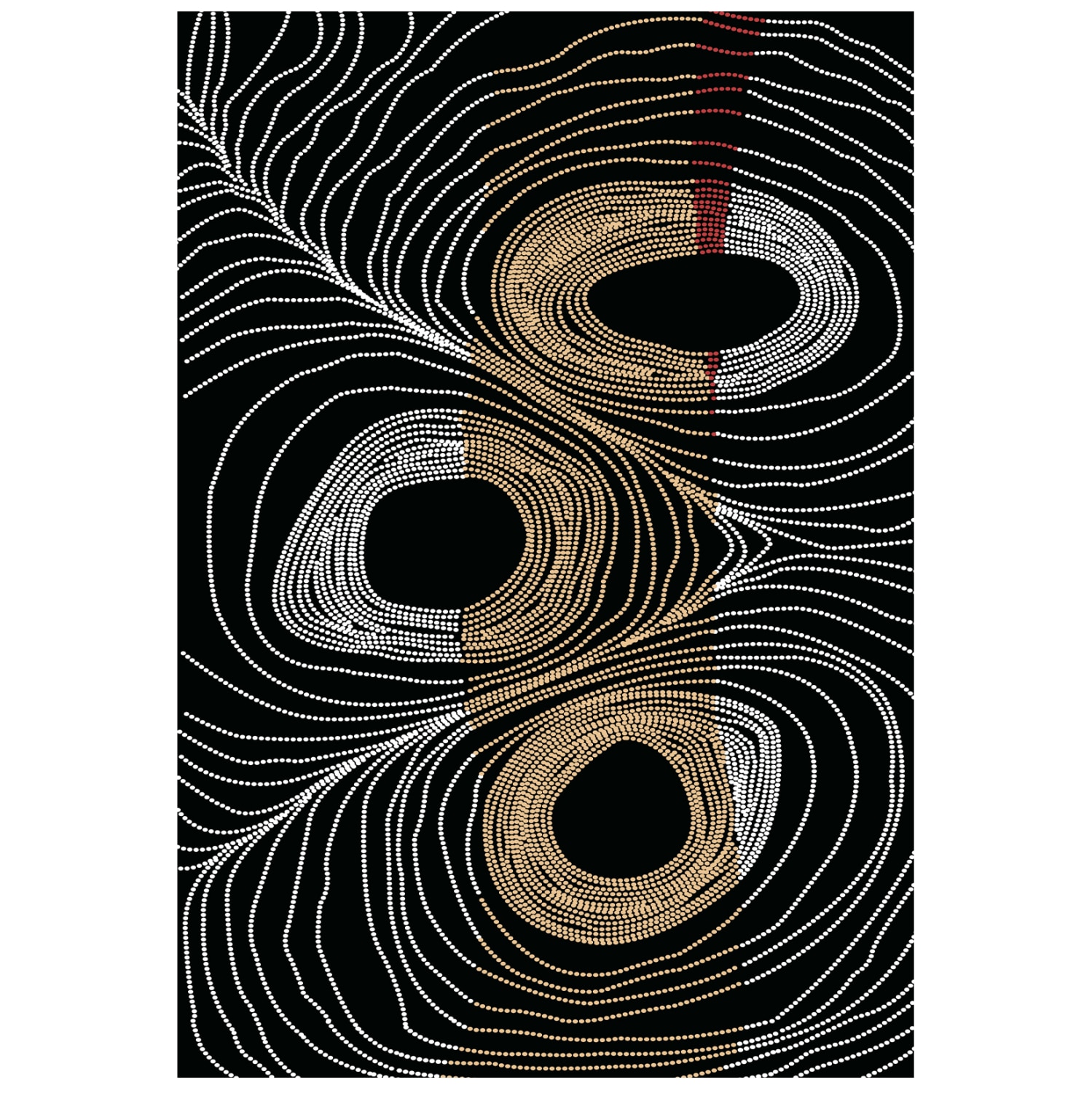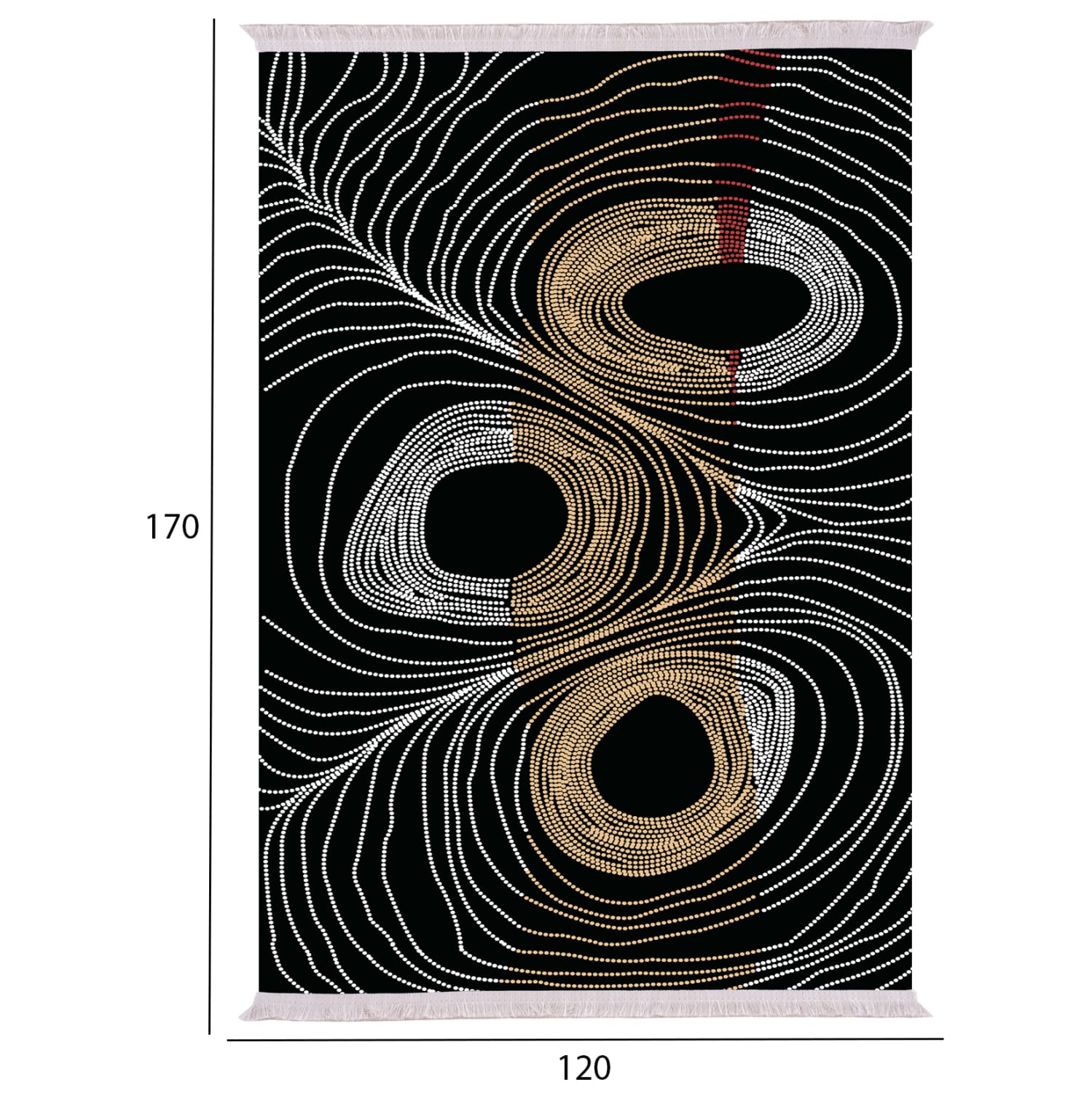 Το συγκεκριμένο χαλί είναι μοντέρνο από όποια οπτική κι αν το δεις. Έχει κυρίαρχα χρώματα το γκρι, και το χρυσό επάνω σε ολόμαυρο φόντο σε όλη την επιφάνεια του χαλιού. Το έντονο χαρακτηριστικό του είναι 3 ακανόνιστοι κύκλοι που μπορούν να ερμηνευθούν όπως το αντιλαμβάνεται ο καθένας. Γι’ αυτό και δίνει την αίσθηση της κίνησης στον χώρο και φυσικά θα προκαλέσει το ενδιαφέρον με την ιδιαίτερη λεπτομέρεια και την περίεργη ασυμμετρία των γραμμών του. Σίγουρα θα αναβαθμίσει αισθητικά το σαλόνι σας.