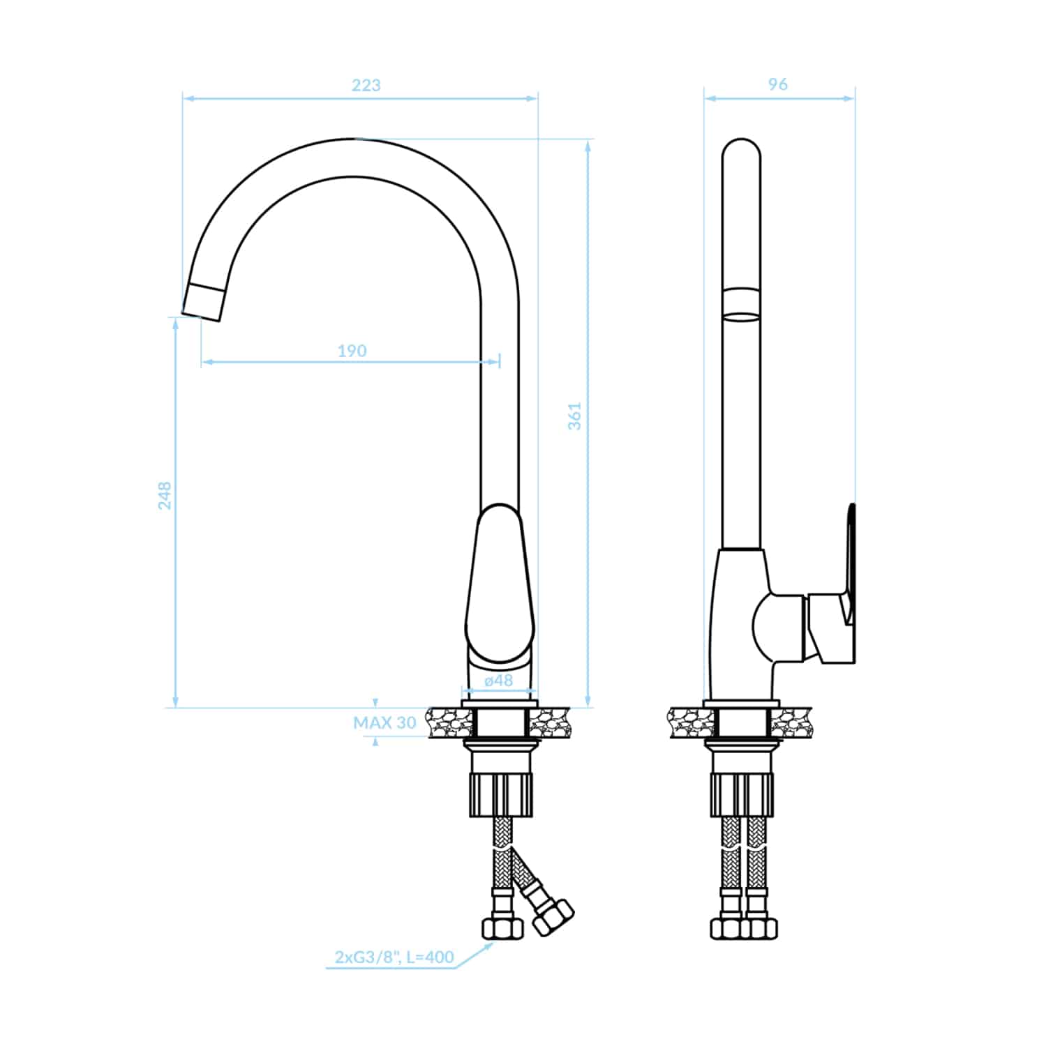 •Συνολικό Ύψος: 361 mm
