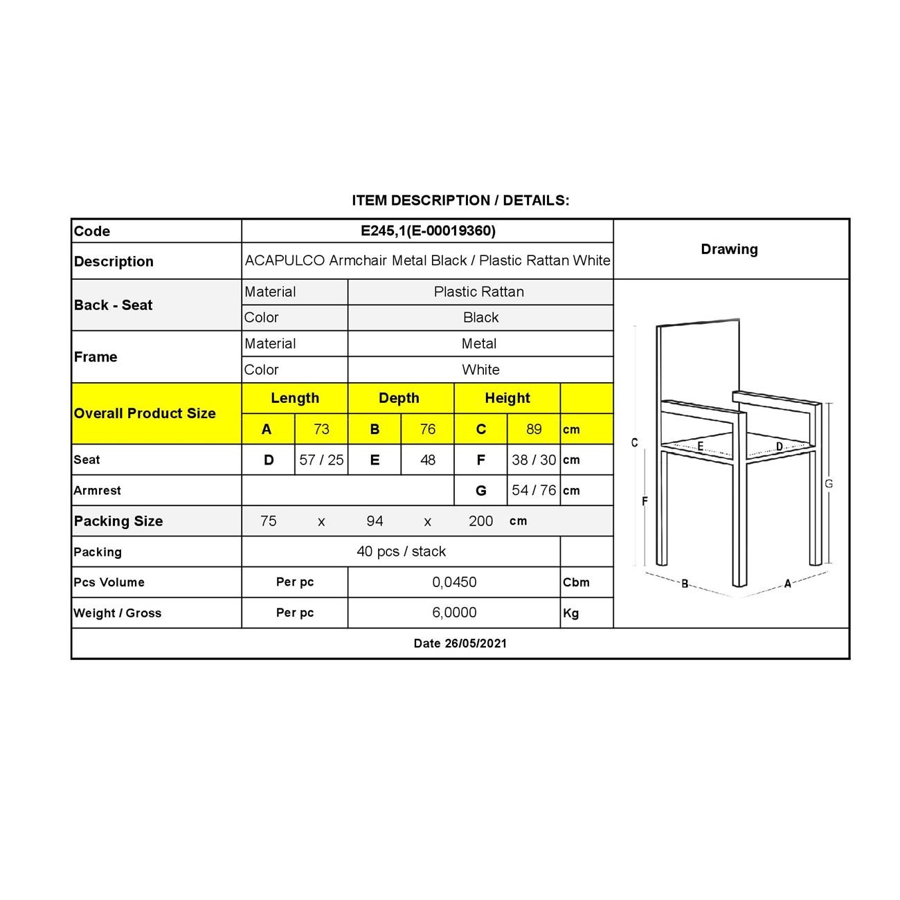 Ε245,1 ACAPULCO Πολ.Μεταλ.Μαύρο, Plastic Rattan Άσπρο
