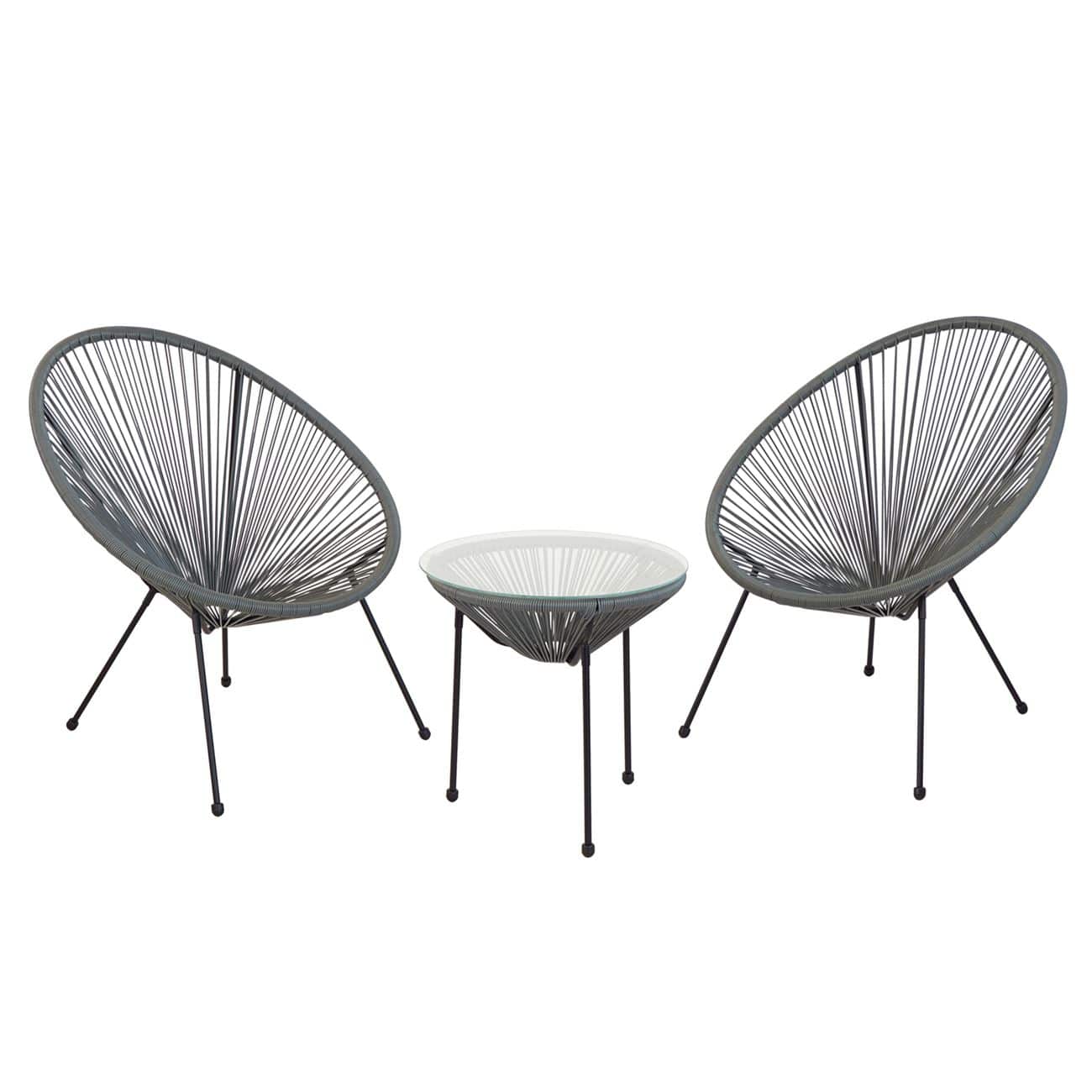 Ε245,4S ACAPULCO Set (Τραπ+2 Πολ) Μετ.Μαύρo, Plastic Rattan Γκρι