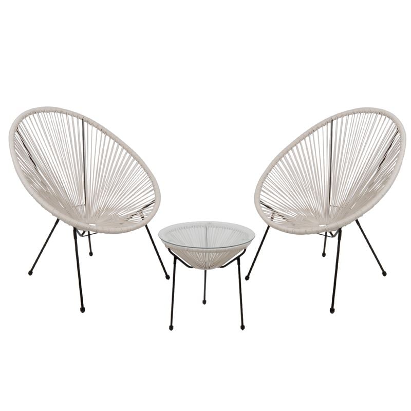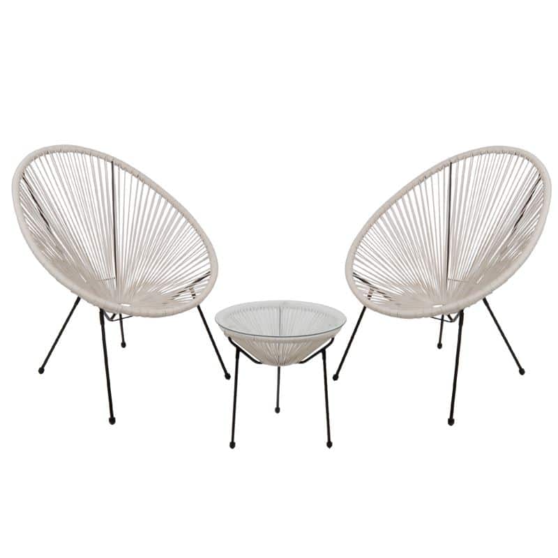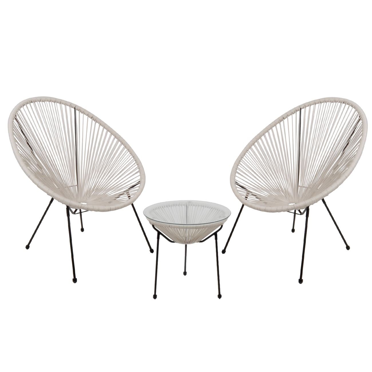 ACAPULCO Set Κήπου – Βεράντας: Τραπέζι + 2 Πολυθρόνες Μέταλλο Μαύρο / Rattan Άσπρο (Ε-00022172)