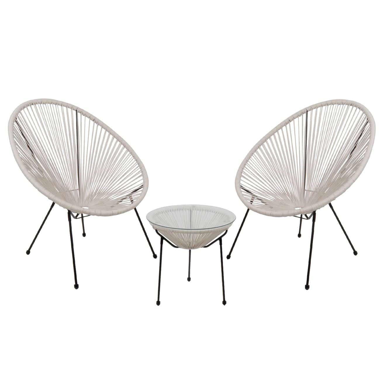 Ε245,1S ACAPULCO Set (Τραπ+2 Πολ) Μετ.Μαύρo, Plastic Rattan Άσπρο