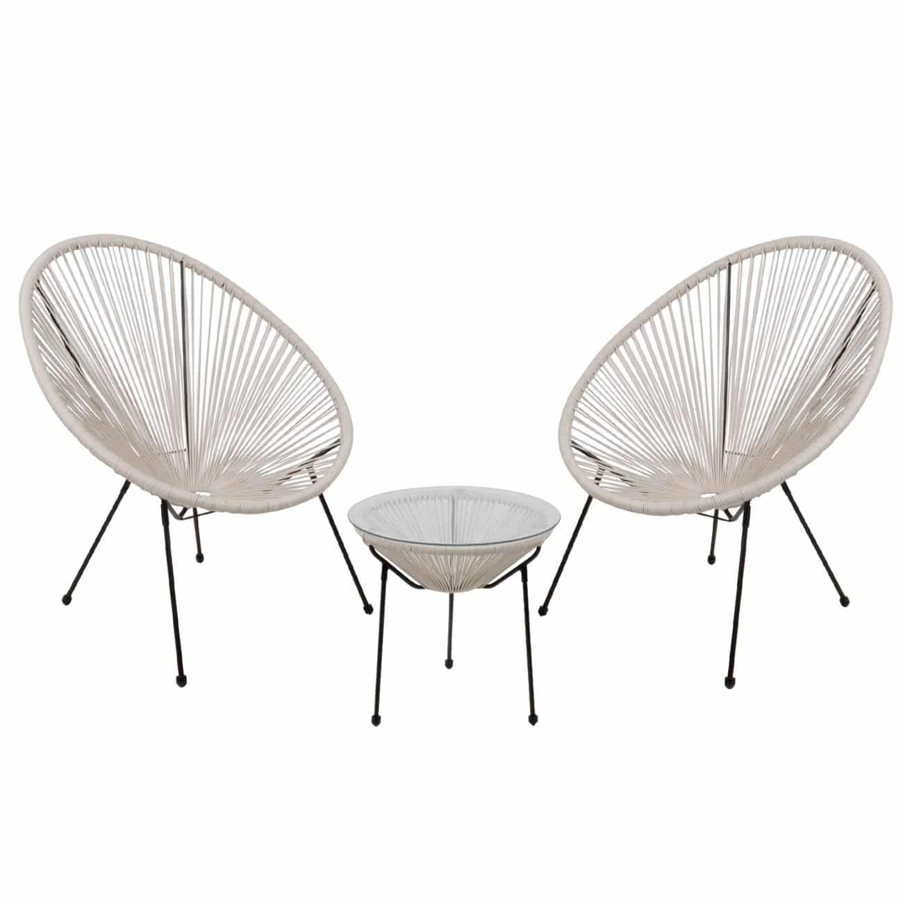 ACAPULCO Set Κήπου – Βεράντας: Τραπέζι + 2 Πολυθρόνες Μέταλλο Μαύρο / Rattan Άσπρο Τραπ:Φ50x50cm – Πολ:73x76x89cm