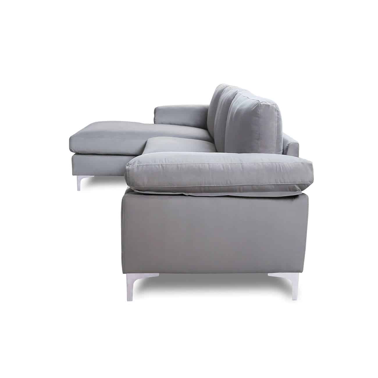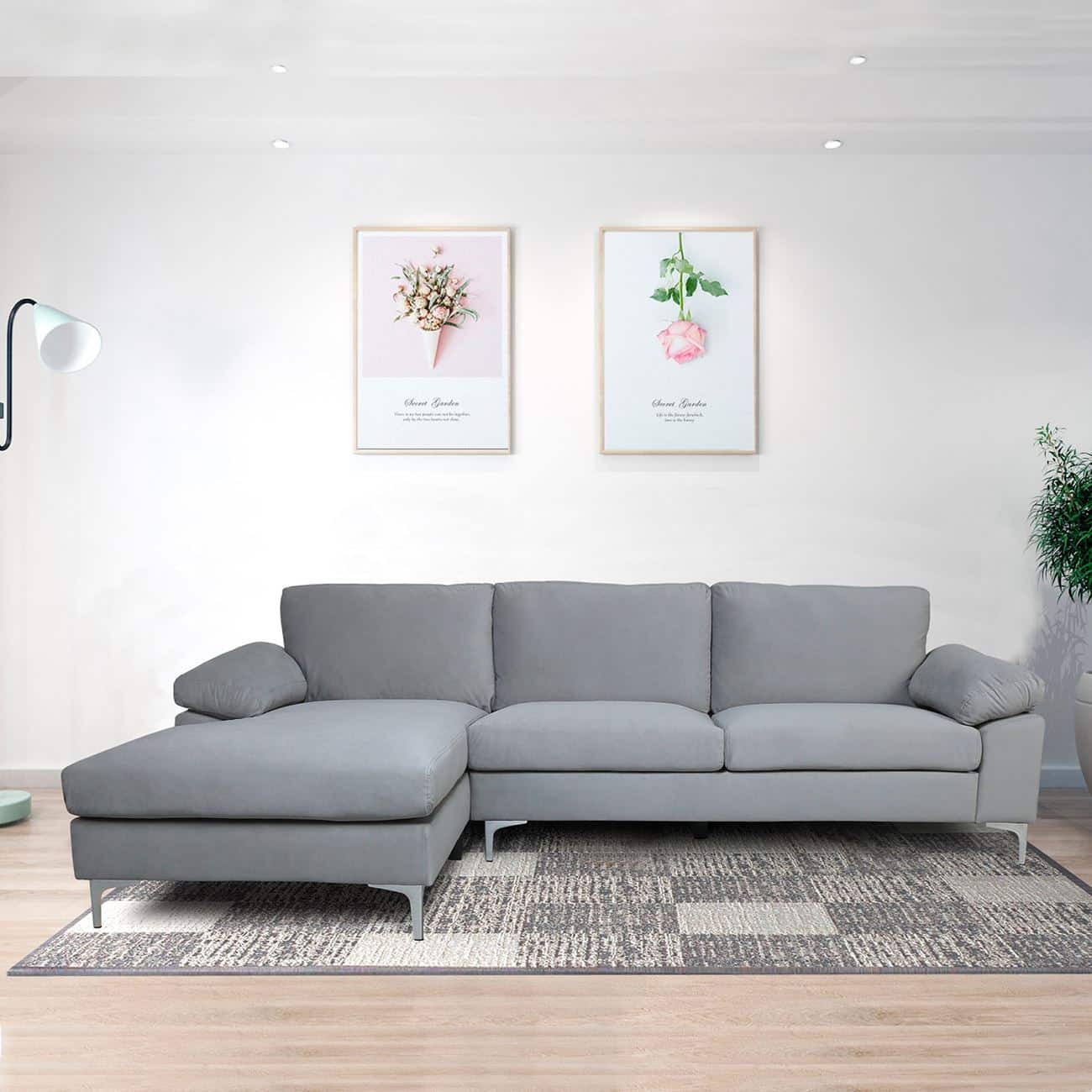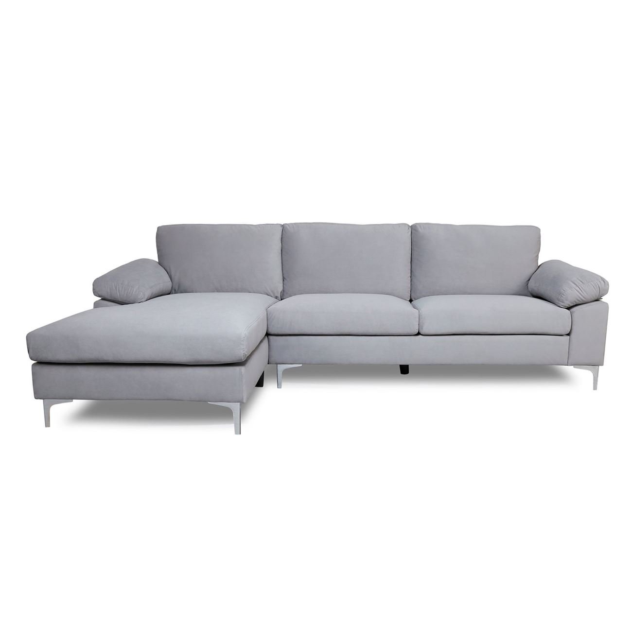 ALEX Καναπές Σαλονιού Καθιστικού Δεξιά Γωνία, Ύφασμα Γκρι Velure 264x132x75cm H.80cm