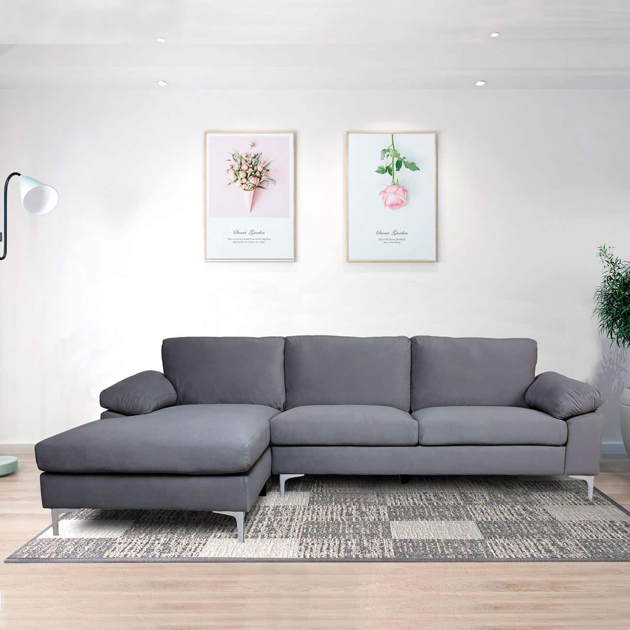 ALEX Καναπές Σαλονιού Καθιστικού Δεξιά Γωνία, Ύφασμα Σκούρο Γκρι Velure 260x130x82cm H.83cm