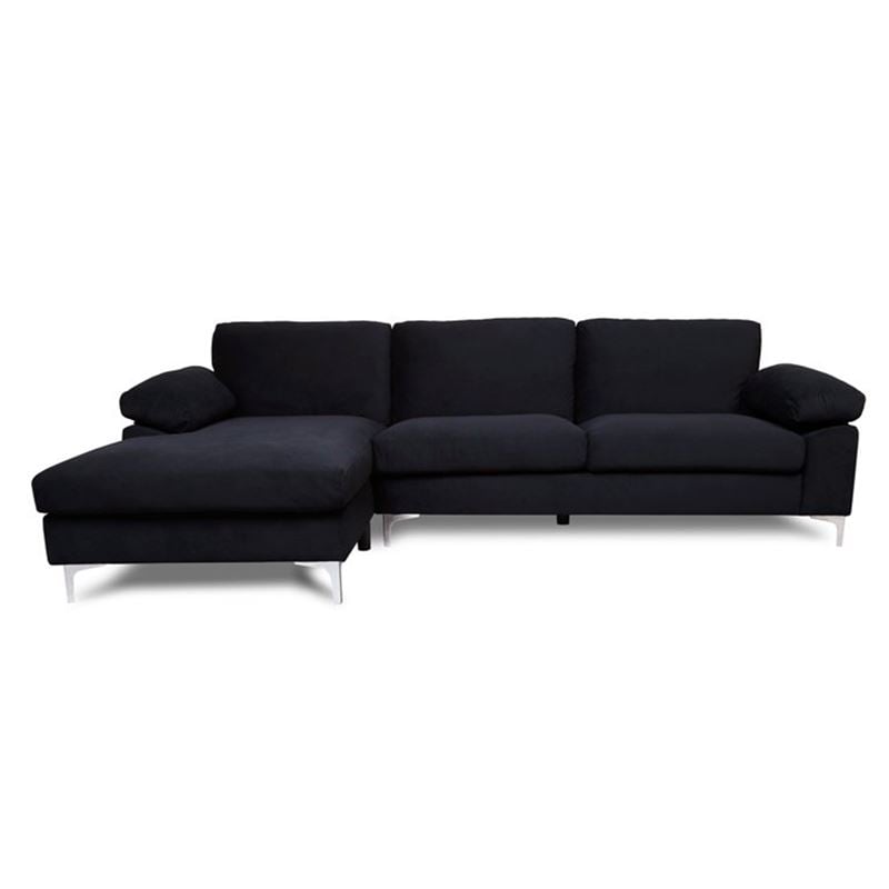 ALEX Καναπές Σαλονιού Καθιστικού Δεξιά Γωνία, Ύφασμα Μαύρο Velure 264x132x75cm H.80cm