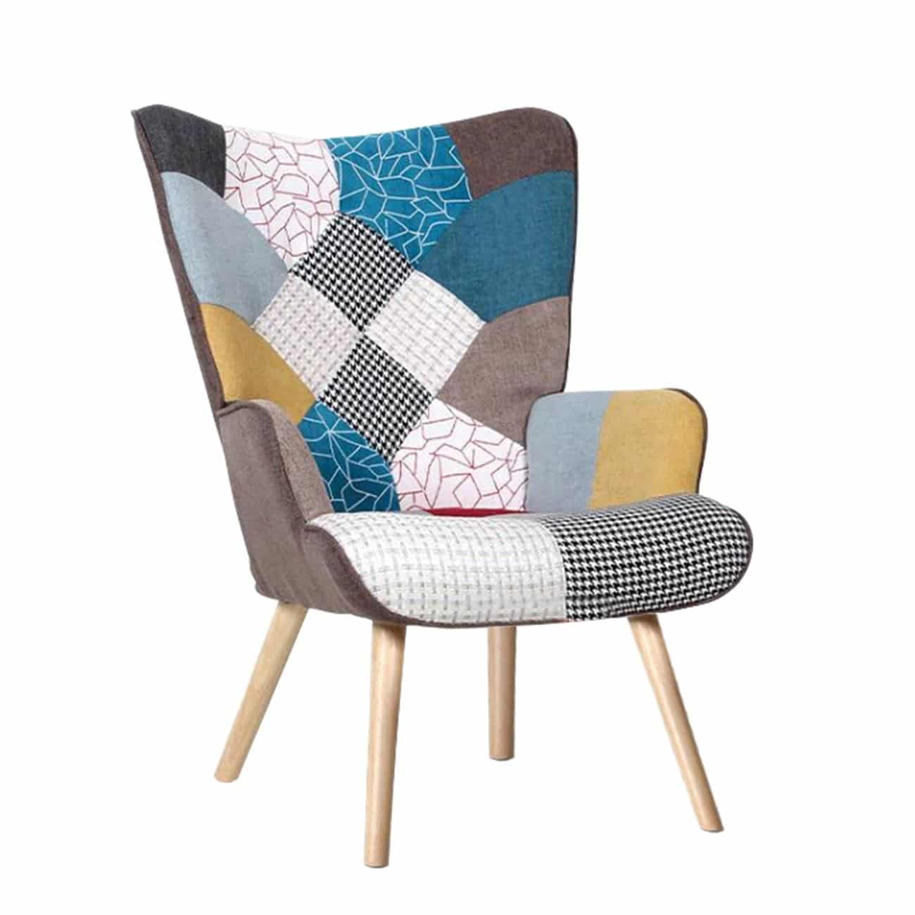 ALMA Πολυθρόνα – Μπερζέρα Σαλονιού – Καθιστικού Φυσικό, Ύφασμα Patchwork, K/D 69x76x97cm