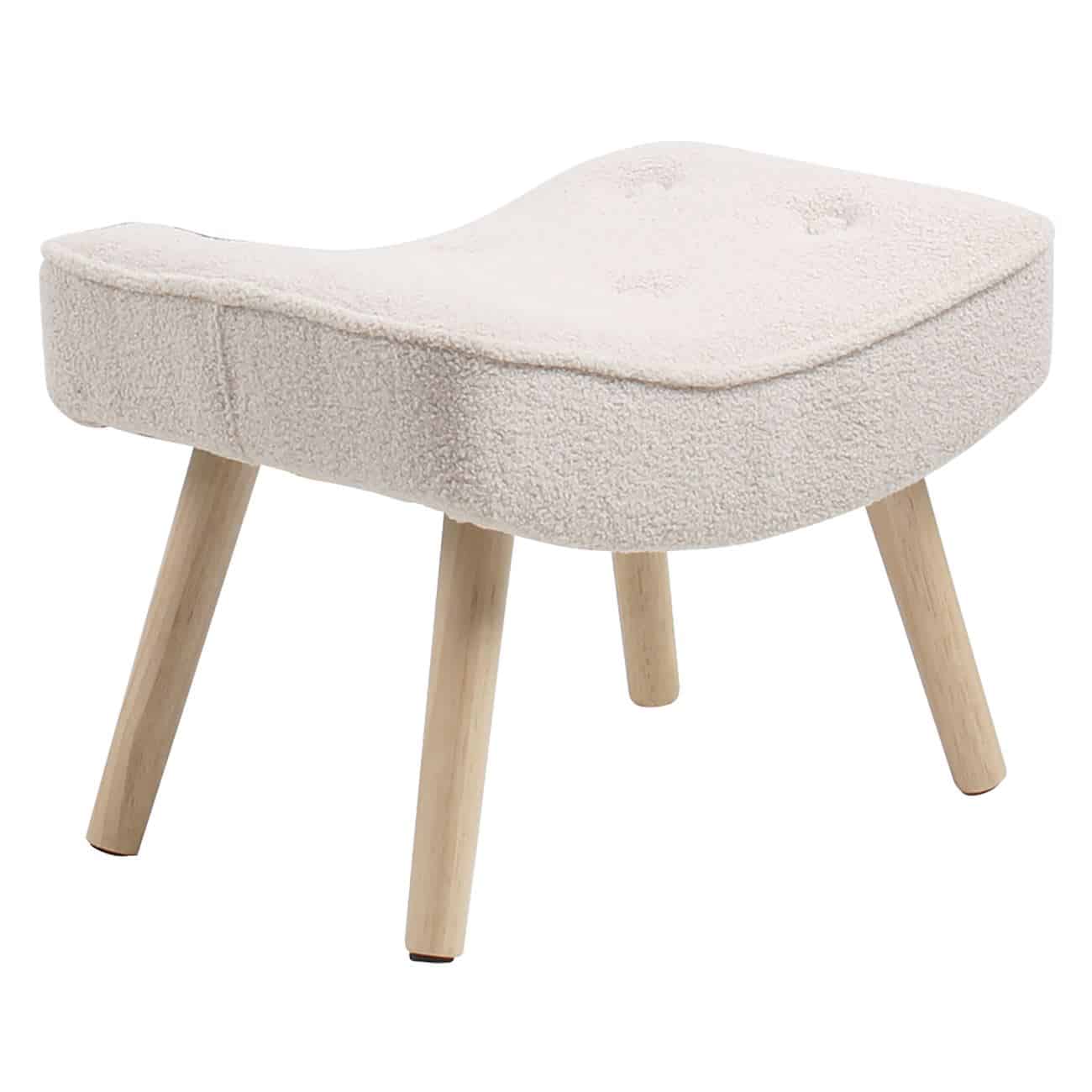 ALMA Σκαμπό – Υποπόδιο, Teddy Ύφασμα Άσπρο, Πόδια Φυσικό, K/D 52x38x35cm