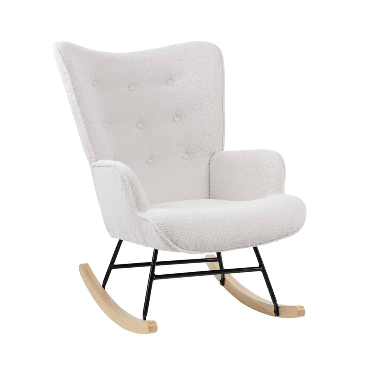 Ε7143,8 ALMA Rocking Πολυθρόνα Teddy Ύφ.Άσπρο/Μεταλ.Μαύρο/Βάση Φυσικό (K/D)