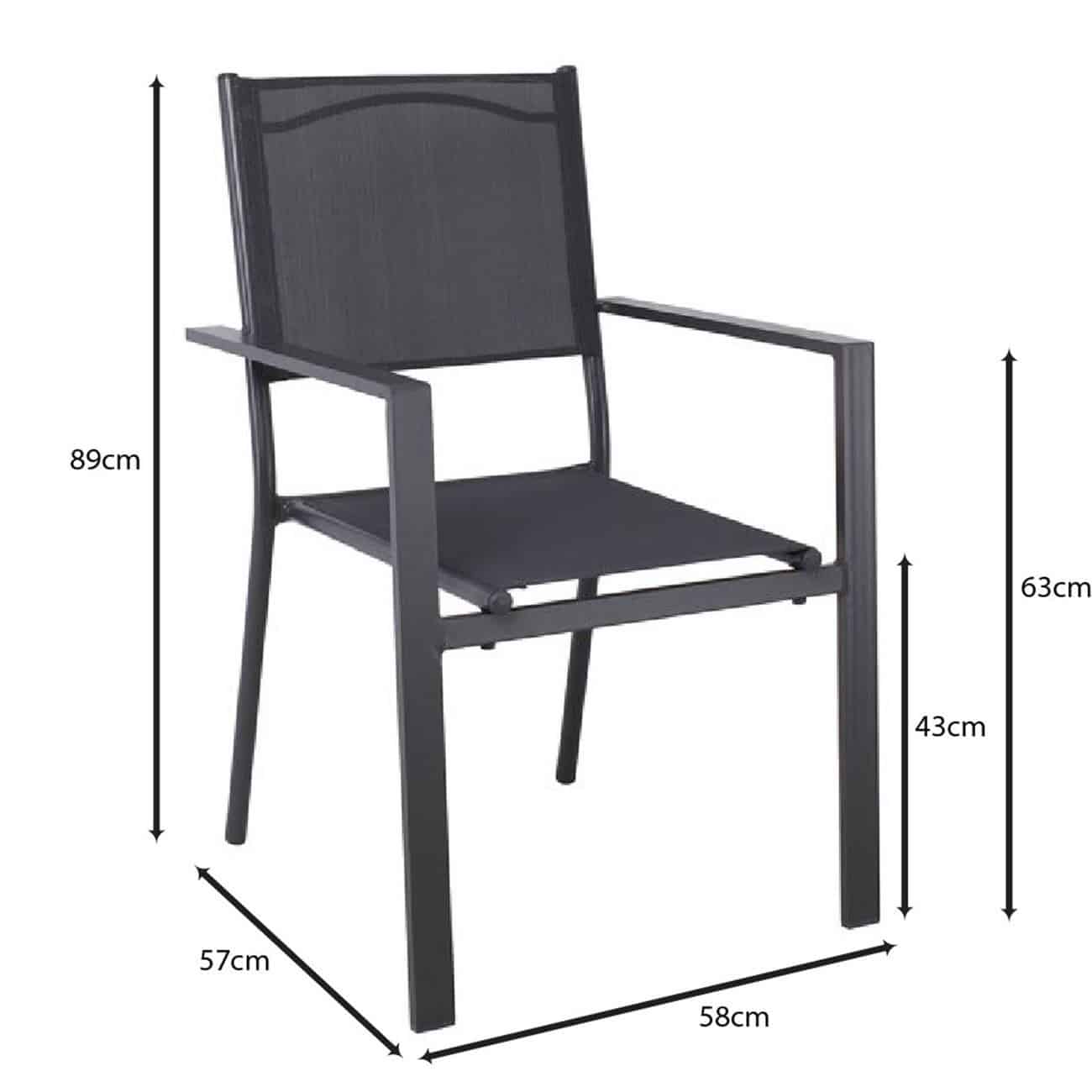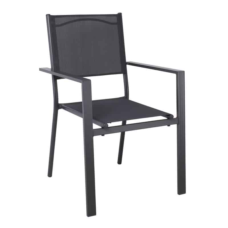 AMIRAL Πολυθρόνα Dining Στοιβαζόμενη, Αλουμίνιο Ανθρακί – Textilene Γκρι 58x57x89cm