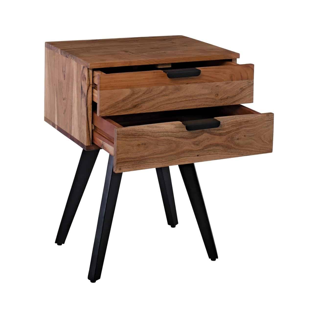 ΕΑ7078 ANKO Κομοδίνο 47x35x65cm Ακακία Φυσικό/Μεταλ.Μαύρο