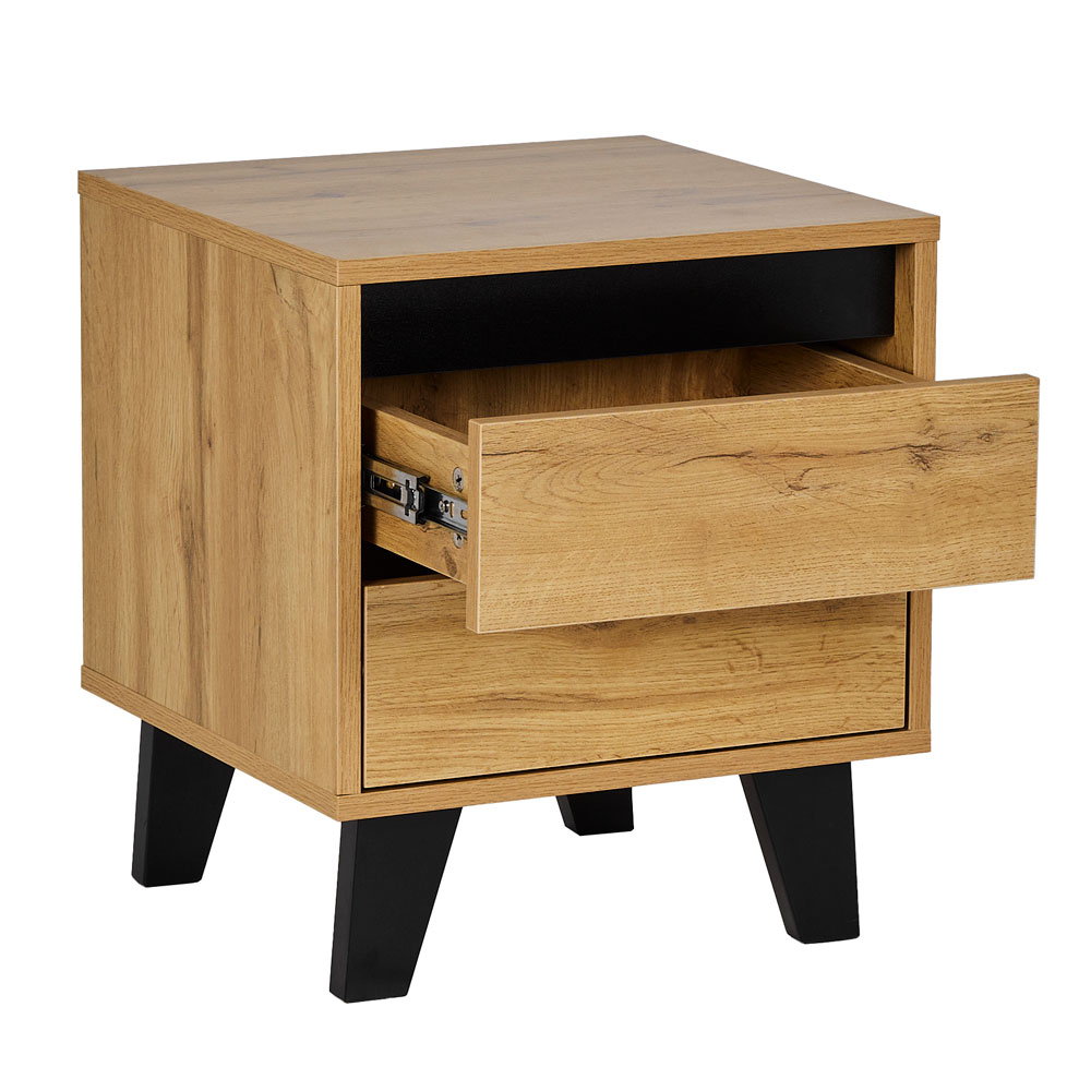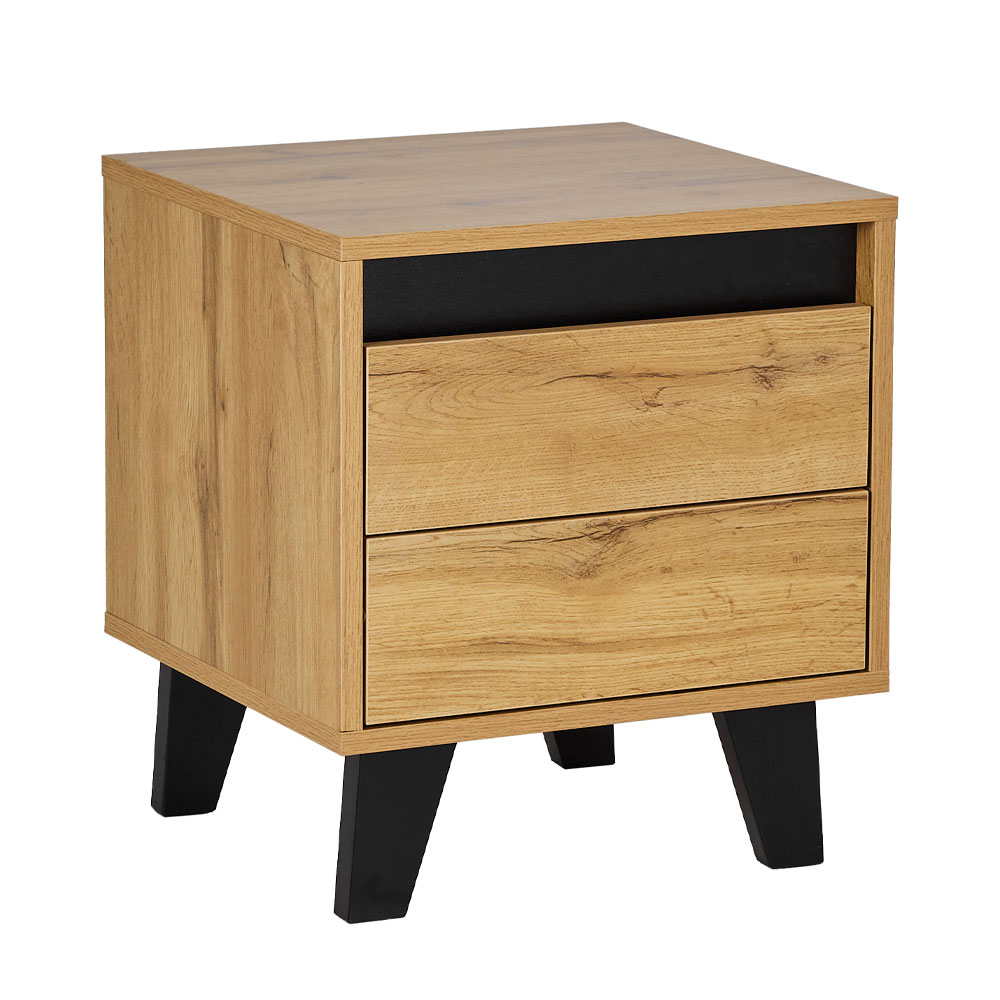 Το κομοδίνο Arabica συνδυάζει την απλότητα της φυσικής ομορφιάς με μοντέρνες λεπτομέρειες. Κατασκευασμένο από επένδυση μελαμίνης σε ανοιχτόχρωμη φυσική απόχρωση ξύλου δρυός (Sonoma), αποπνέει ζεστασιά και φινέτσα. Οι μαύρες λεπτομέρειες δημιουργούν μια κομψή αντίθεση, αναδεικνύοντας τον σύγχρονο σχεδιασμό του. Διαθέτει δύο ευρύχωρα συρτάρια, προσφέροντας πρακτικότητα και οργάνωση στον χώρο σας. Το Arabica είναι ιδανικό για να ολοκληρώσετε την αισθητική του υπνοδωματίου σας με στυλ και λειτουργικότητα.