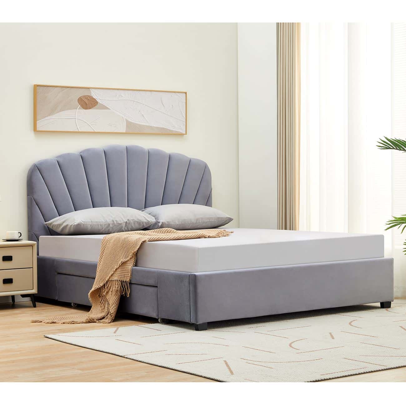 ARIEL Κρεβάτι Διπλό για Στρώμα 160x200cm, με Αποθηκευτικό Συρτάρι, Velure Απόχρωση Γκρι (Ε-00024913)