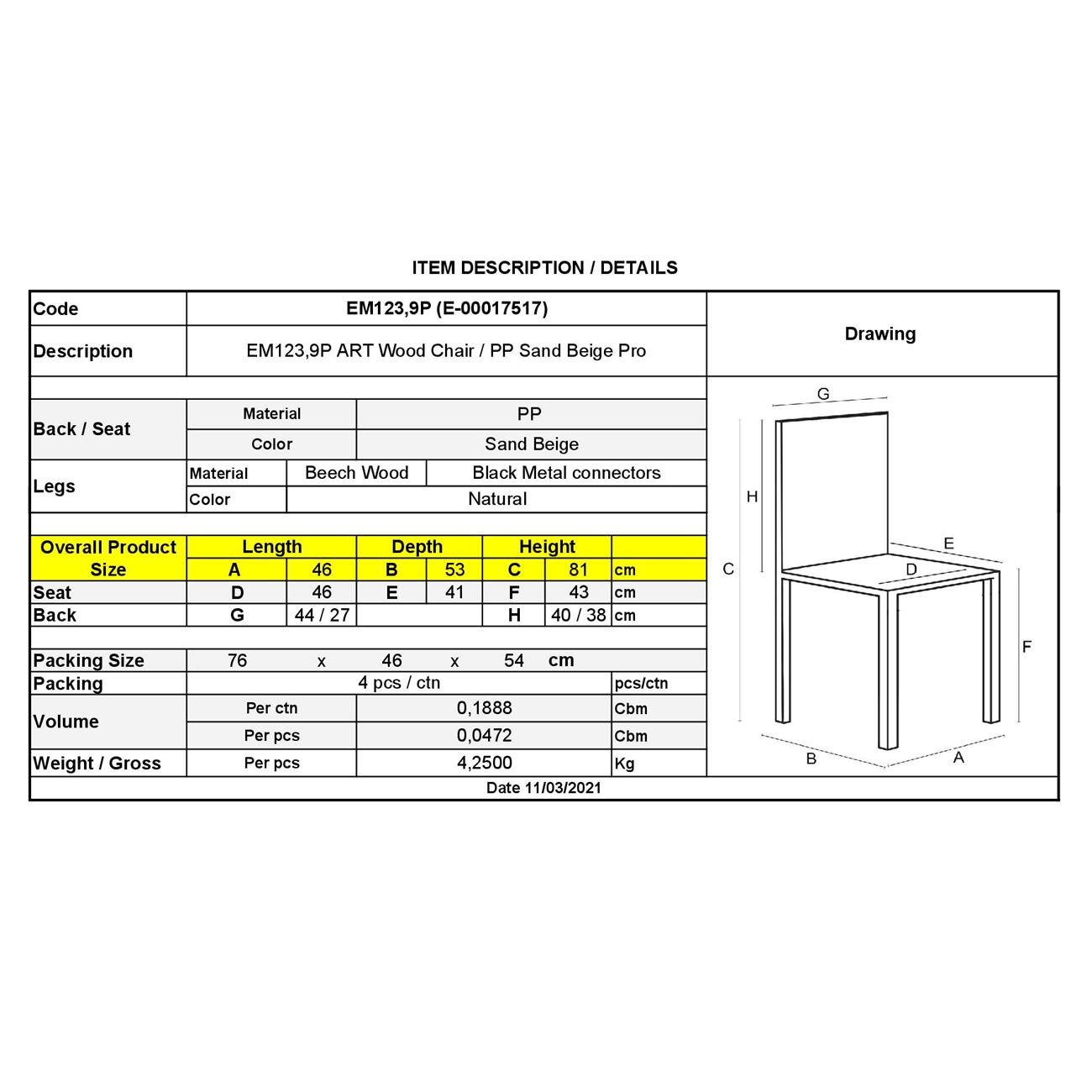 ΕΜ123,9P ART Wood Καρέκλα PP Sand Beige / Pro