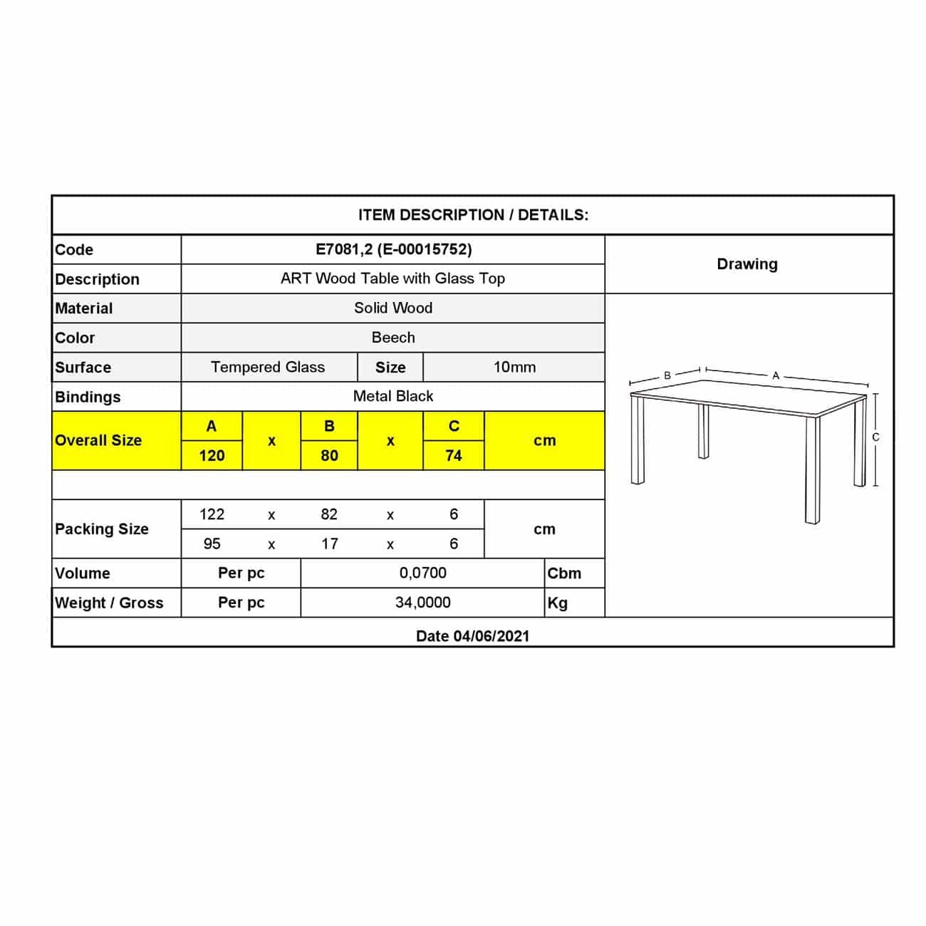 Ε7081,2 – ART Wood Τραπέζι 120x80cm Ξύλο/Γυαλί 10mm