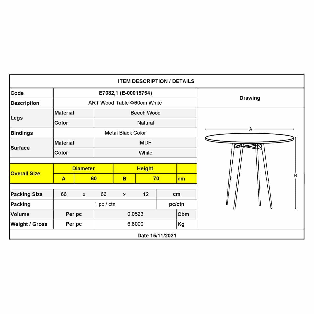 Ε7082,1 – ART Wood Τραπέζι Φ60cm Λευκό