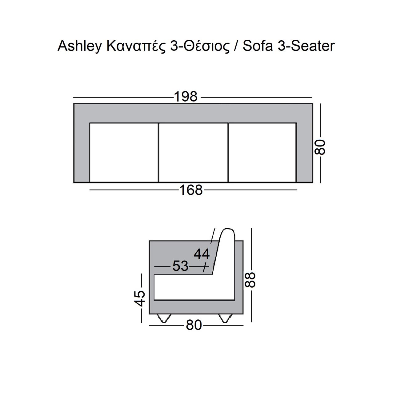 Ε986,3 ASHLEY Καναπές 3θέσ.Ύφασμα Μπεζ