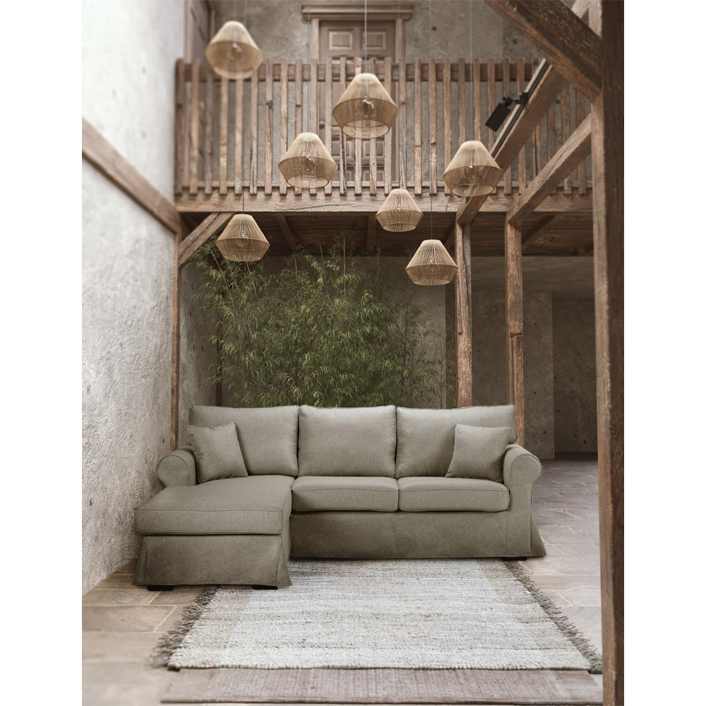 Ο γωνιακός καναπές ASHLEY της συλλογής CASAFORTE είναι η ιδανική προσθήκη για κάθε καθιστικό, προσφέροντας άνεση και πρακτικότητα με στυλ. Διαθέτει ανθεκτικό ύφασμα τύπου λινό, σε ανοιχτο καφέ χρώμα. Το αποσυρόμενο κάλυμμα μαζί με τα μαξιλάρια πλάτης και καθίσματος, σας επιτρέπουν να τα βγάλετε και να τα πλύνετε εύκολα, διατηρώντας τον καναπέ σας πάντα φρέσκο. Ο country καναπές ASHLEY, με αριστερή διάταξη γωνίας, θα προσθέσει έναν αέρα κομψότητας και άνεσης στον χώρο σας.