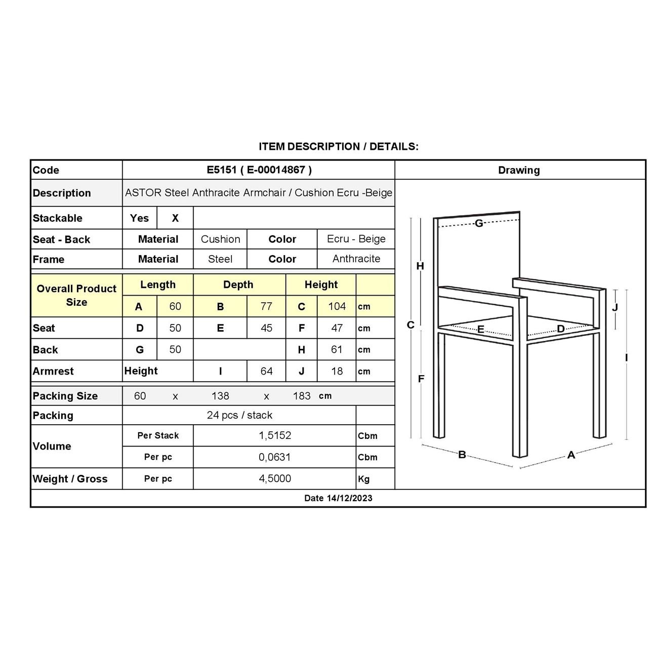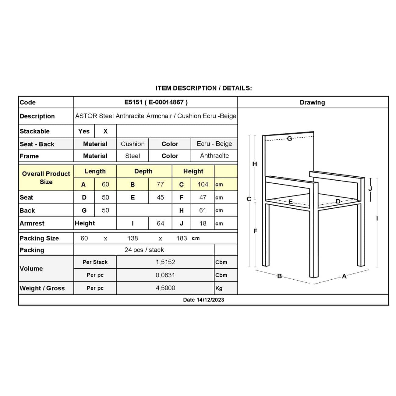 ASTOR Πολυθρόνα Κήπου – Βεράντας, Μέταλλο Βαφή Ανθρακί, Μαξιλάρι Μπεζ (Ε-00014867)