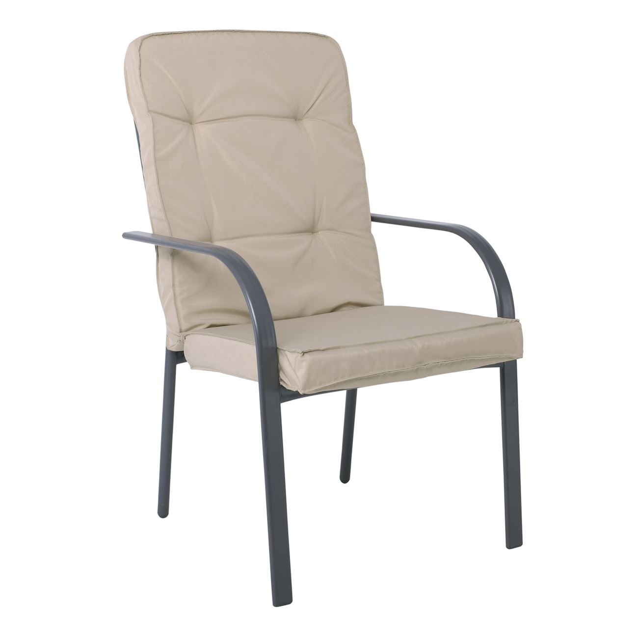 ASTOR Πολυθρόνα Κήπου – Βεράντας, Μέταλλο Βαφή Ανθρακί, Μαξιλάρι Μπεζ 60x77x104cm