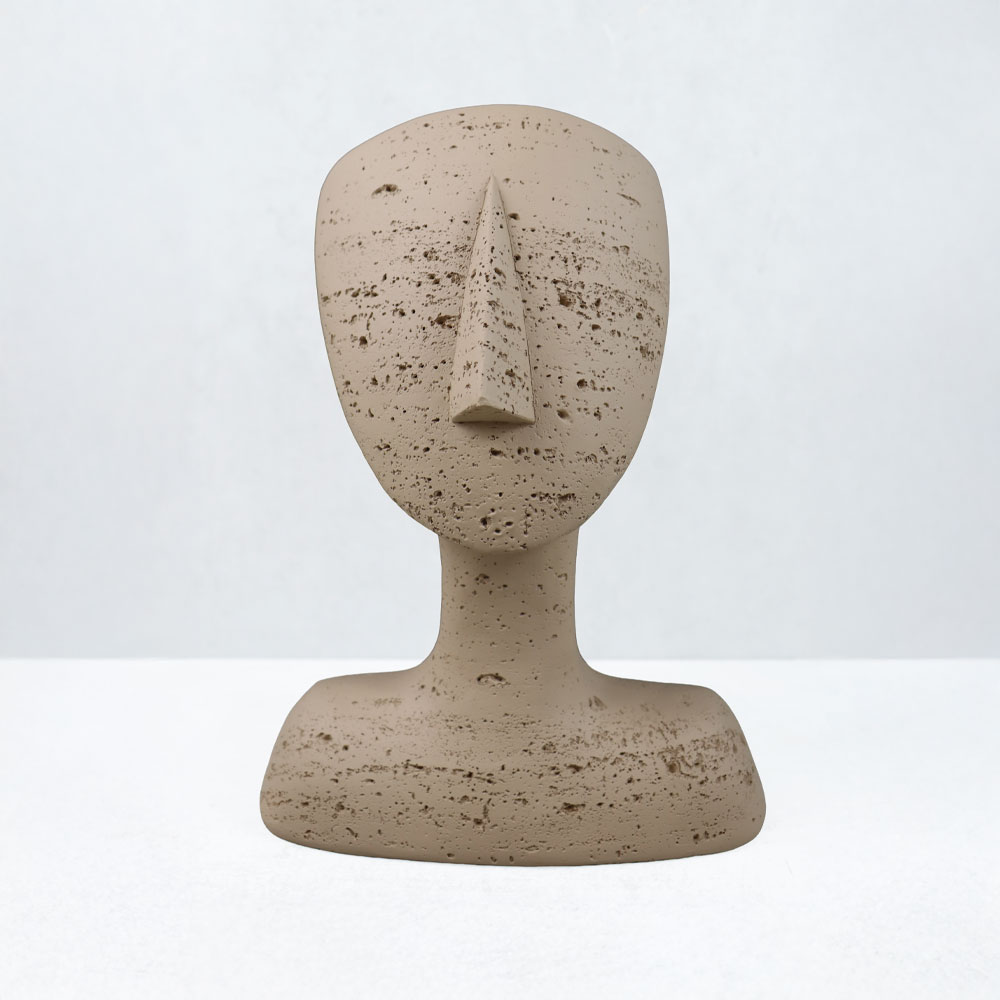 Το AURA I είναι ένα διακοσμητικό πρόσωπο από resin σε καφέ ανοιχτό χρώμα που ξεχωρίζει για την εκλεπτυσμένη υφή και τις λεπτομερείς γραμμές του. Με σύγχρονο και μινιμαλιστικό σχεδιασμό, προσφέρει μια αίσθηση γήινης ζεστασιάς και αρμονίας σε κάθε χώρο. Ιδανικό για να δώσει μια καλλιτεχνική νότα σε μοντέρνες και φυσικές διακοσμήσεις.