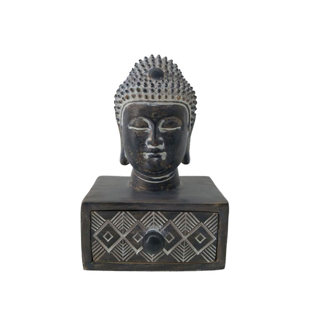 Η διακοσμητική φιγούρα BADBA DARK συνδυάζει τον πνευματικό συμβολισμό του Βούδα με την πρακτικότητα ενός μικρού συρταριού, ιδανικού για την αποθήκευση μικροαντικειμένων ή κοσμημάτων. Η επιφάνειά του διακοσμείται με γεωμετρικά tribal μοτίβα, ενώ οι γήινες αποχρώσεις μαύρου, καφέ και λευκού προσδίδουν ζεστασιά και χαρακτήρα. Ιδανικό για κομοδίνα, κονσόλες ή χώρους με ethnic ή boho ύφος, το BADBA DARK είναι ένα μοναδικό αντικείμενο που συνδυάζει διακόσμηση και λειτουργικότητα.