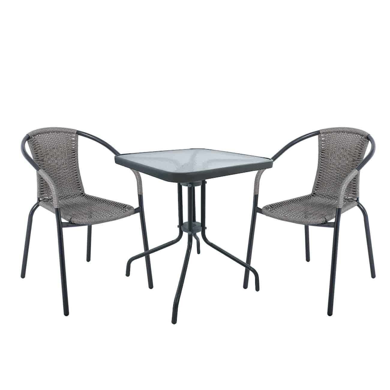BALENO Set Κήπου – Βεράντας: Τραπέζι + 2 Πολυθρόνες Μέταλλο Ανθρακί, Wicker Mixed Grey Table:60x60x70 Seat:53x58x77