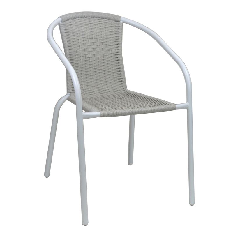 BALENO-W Πολυθρόνα Στοιβαζόμενη, Μέταλλο Βαφή Άσπρο, Wicker Beige (Ε-00025913)