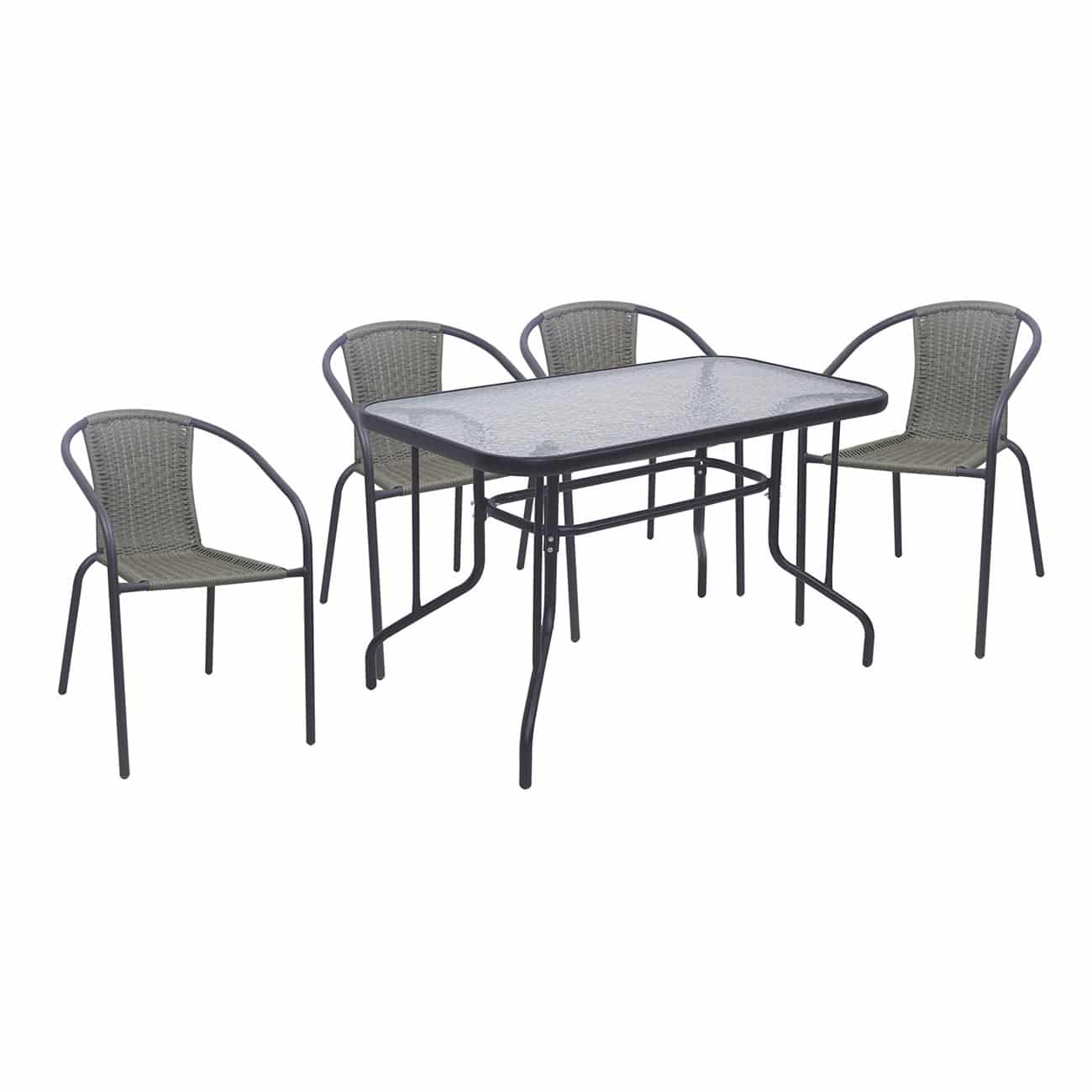 BALENO-W Set Τραπεζαρία Κήπου: Τραπέζι + 4 Πολυθρόνες Μέταλλο Ανθρακί, Wicker Mixed Grey Table:110x60x71 Seat:52x60x72