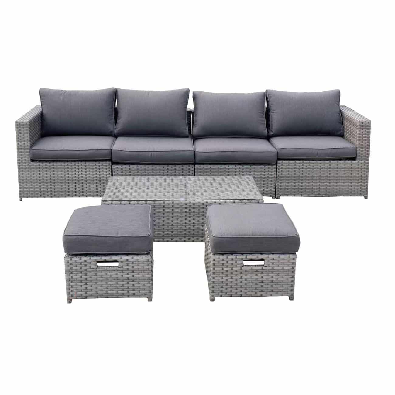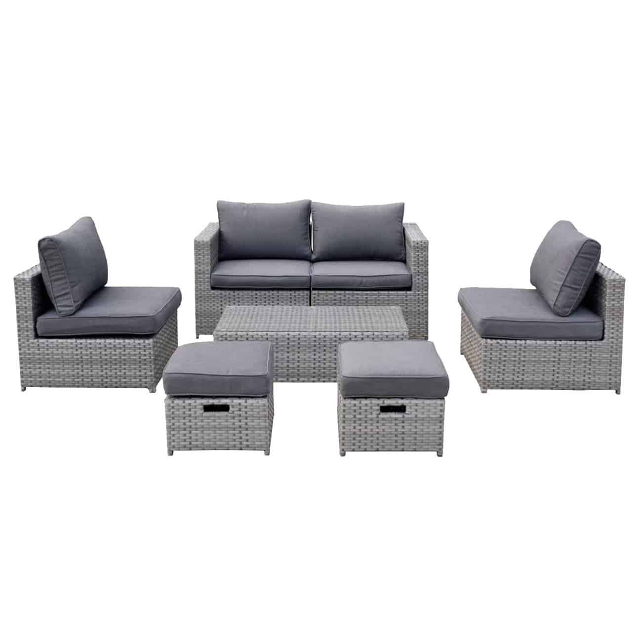 BALI Set Μέταλλο – Wicker: Τραπέζι+ 2θ Καναπέ+ 2 Σκαμπό+ 2 καθίσματα, Απόχρωση Γκρι Table:100x50x30cm Set 6 Seats