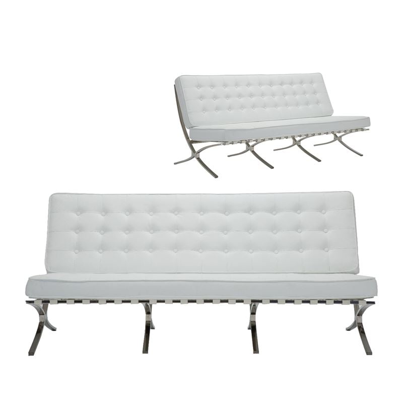BARCELONA τ. Καναπές Σαλονιού Καθιστικού 3Θέσιος Inox – Pu Άσπρο (Ε-00019319)