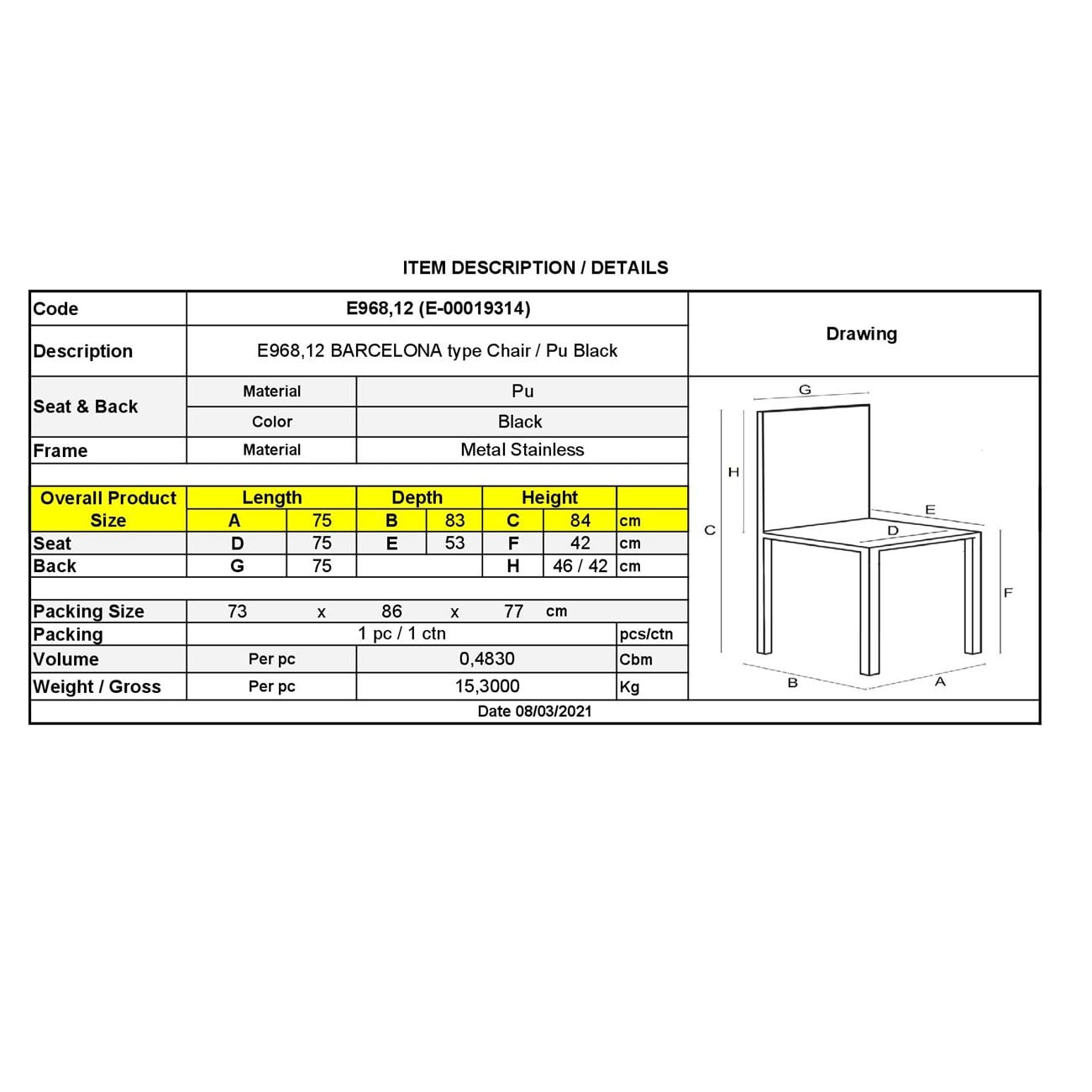 Ε968,12 – BARCELONA τ. Καρέκλα Pu Μαύρο