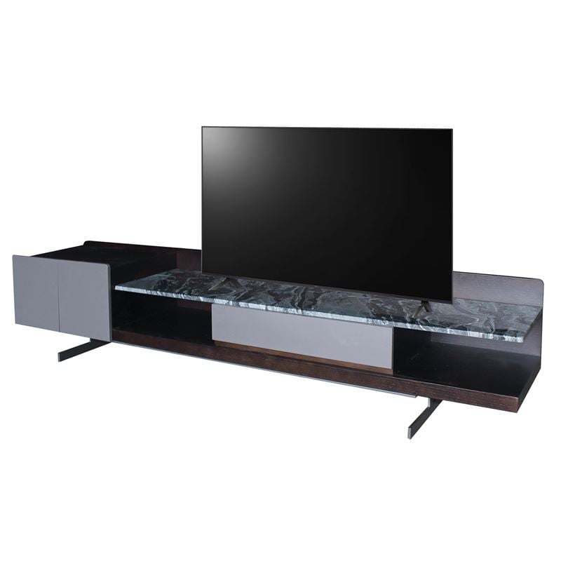 BARRY Έπιπλο TV, Επιφάνειες: Ξύλο Καρυδί+Μάρμαρο Γκρι, Βάση Μέταλλο 220x45x47cm