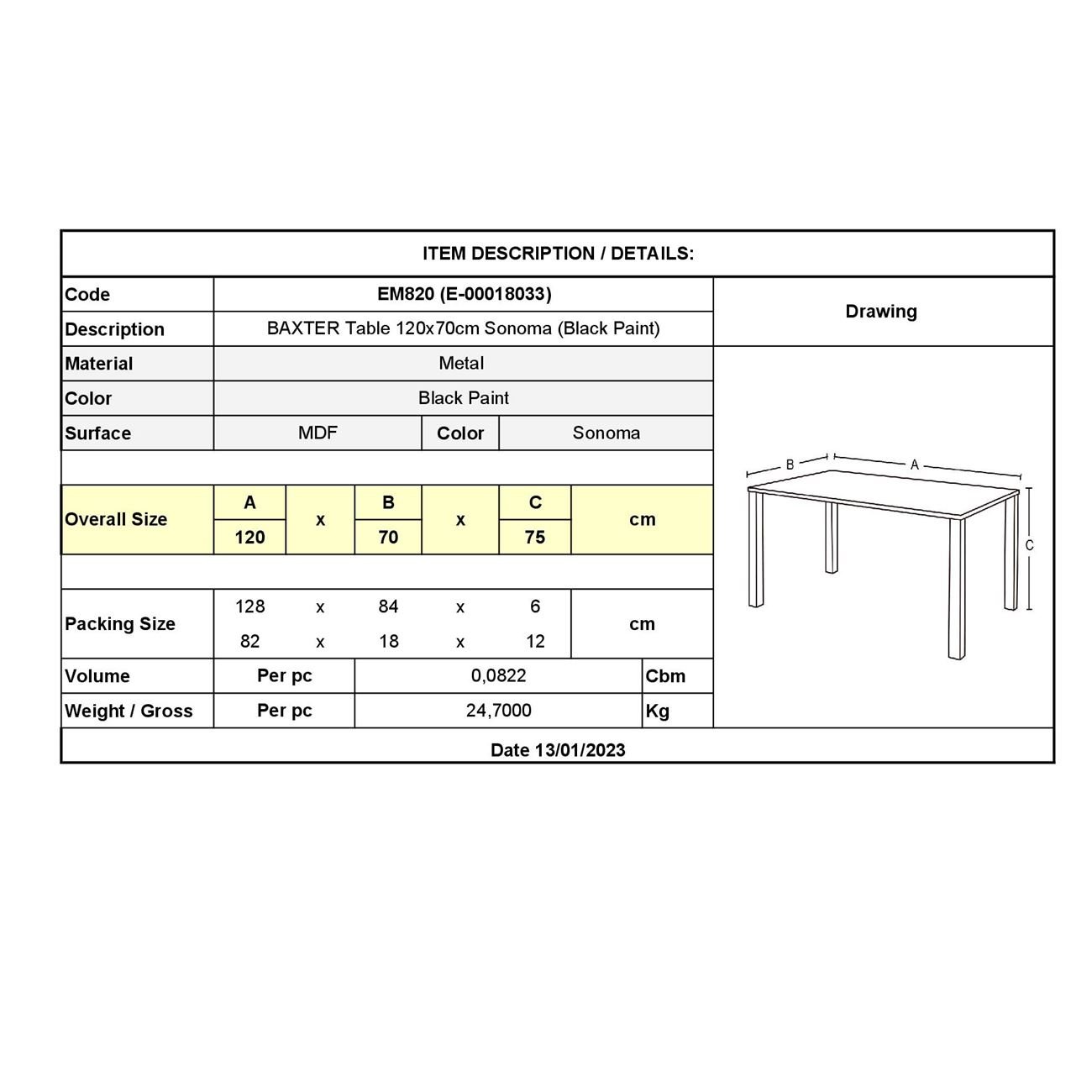 ΕΜ820 BAXTER Τραπέζι 120x70cm Sonoma/Βαφή Μαύρο