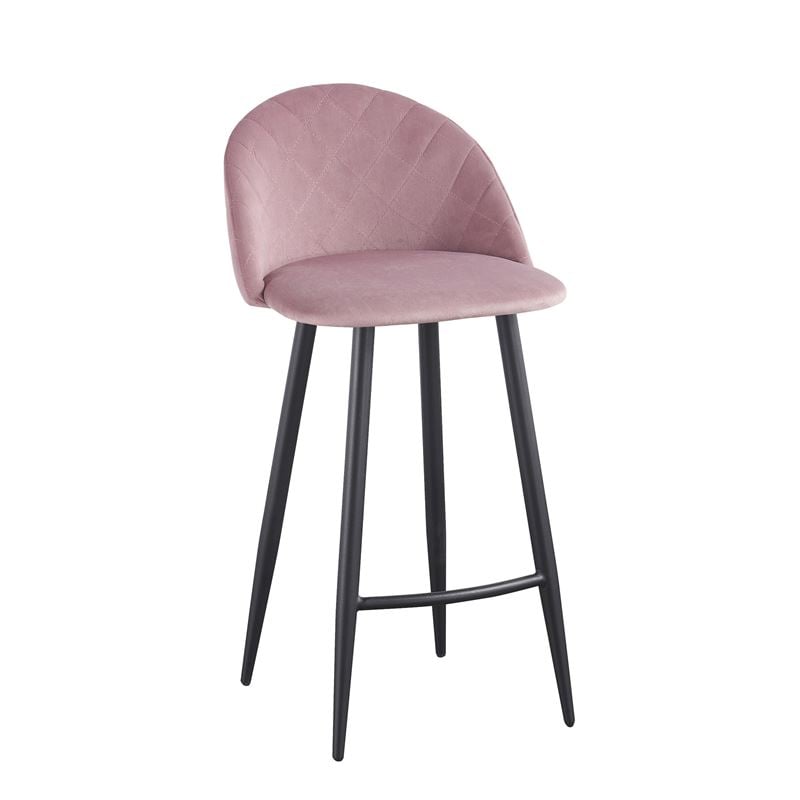 ΕΜ758,1 BELLA Σκαμπό BAR Μεταλ.Μαύρο/Ύφασμα Velure Dirty Pink