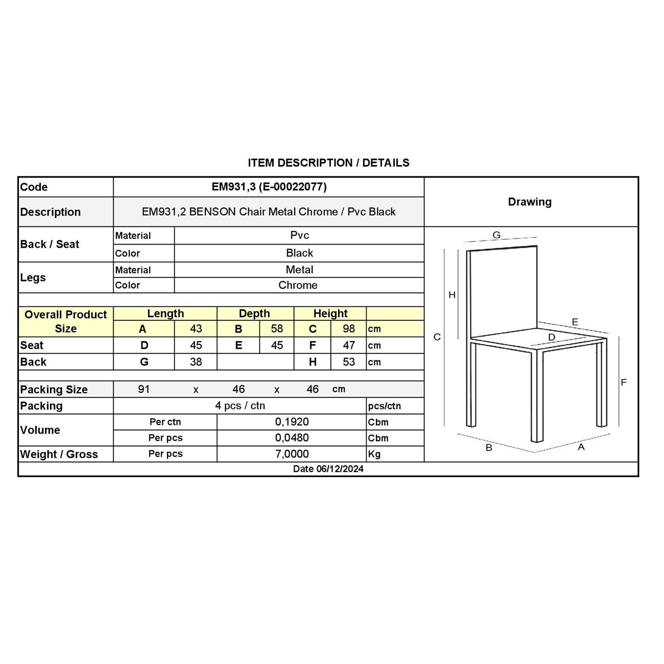 BENSON Καρέκλα Μέταλλο Χρώμιο, PVC Μαύρο (Ε-00022077)