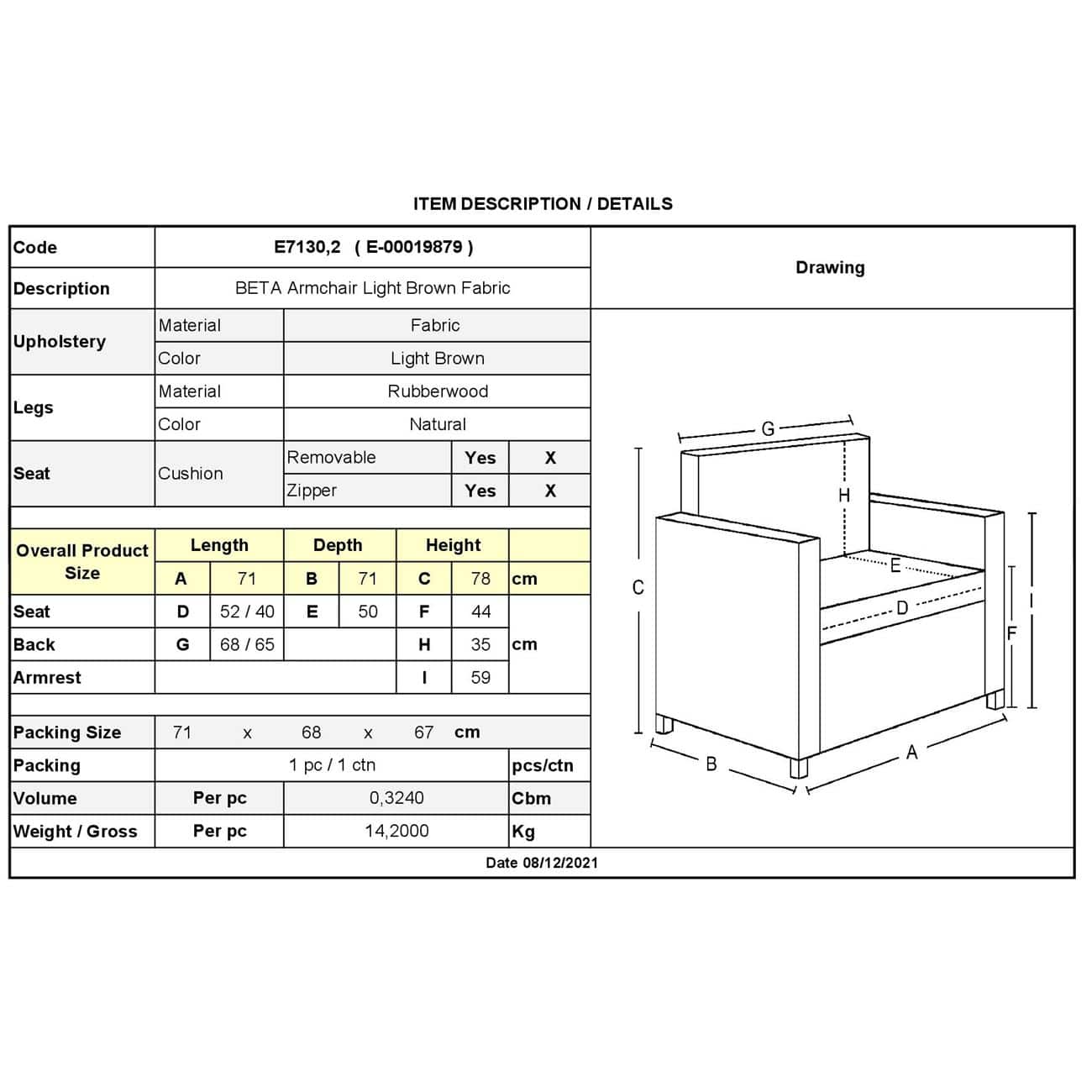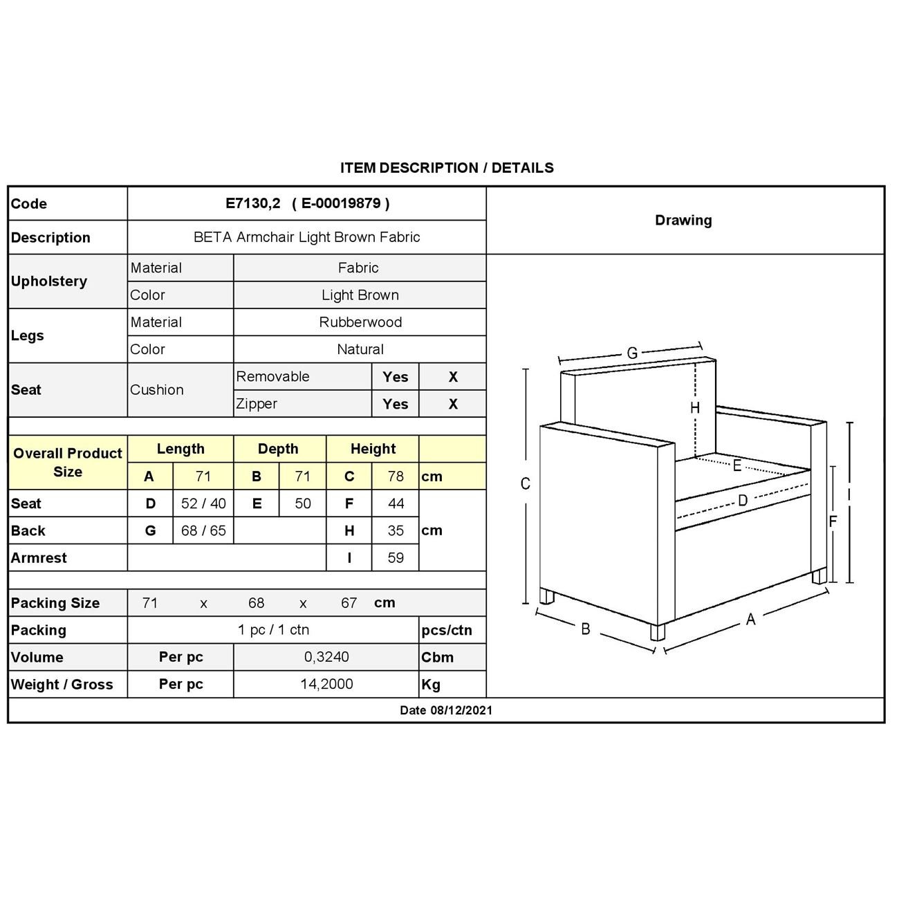 Ε7130,2 BETA Πολυθρόνα Ύφασμα Αν.Καφέ