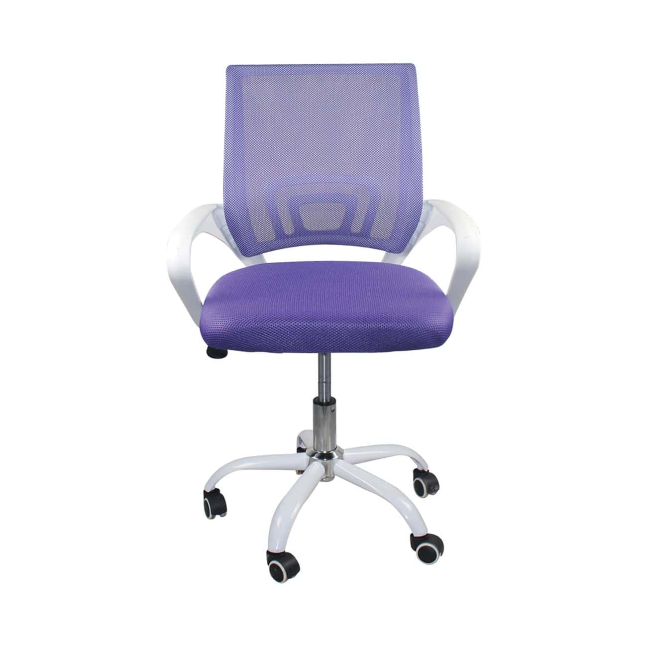 BF2101-SC Πολυθρόνα Γραφείου χωρίς Ανάκλιση Μέταλλο Βάση Βαφή Άσπρο – Ύφασμα Mesh Μωβ 56x55x84/94cm